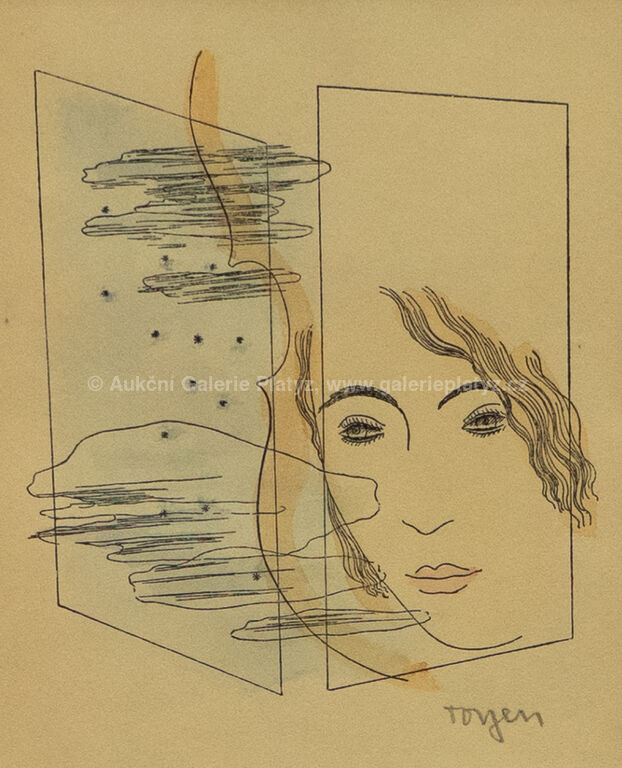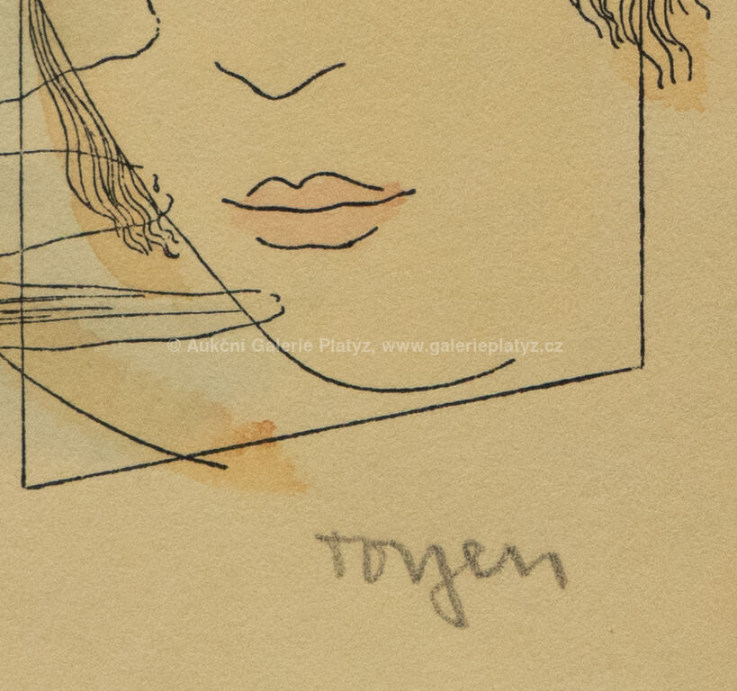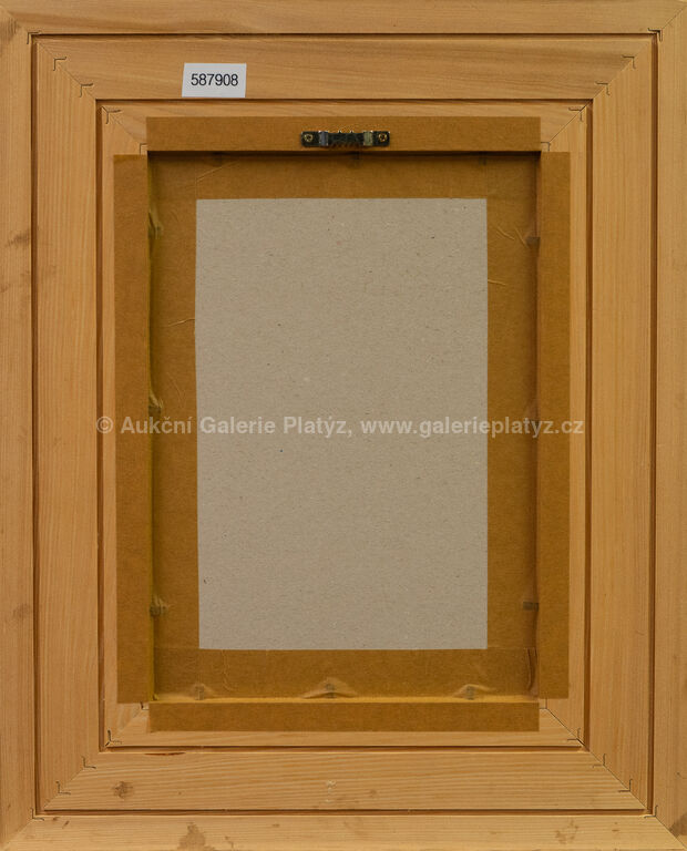 kolorovaná zinkografie, rozměr ve výřezu 13,5 x 11 cm, značeno vpravo dole, paspartováno, zaskleno, rámováno