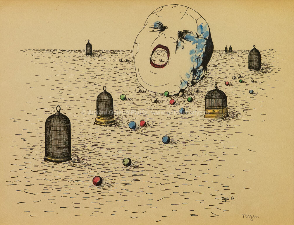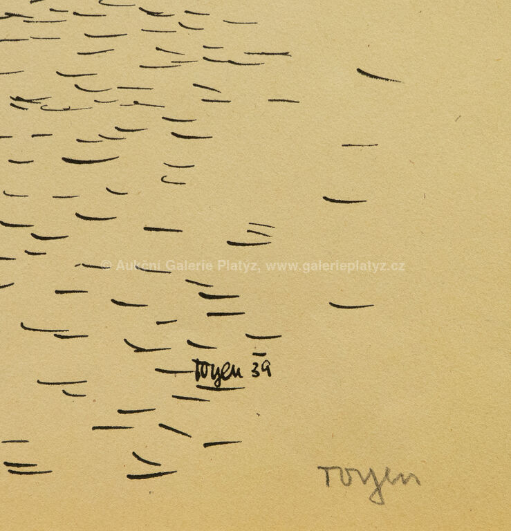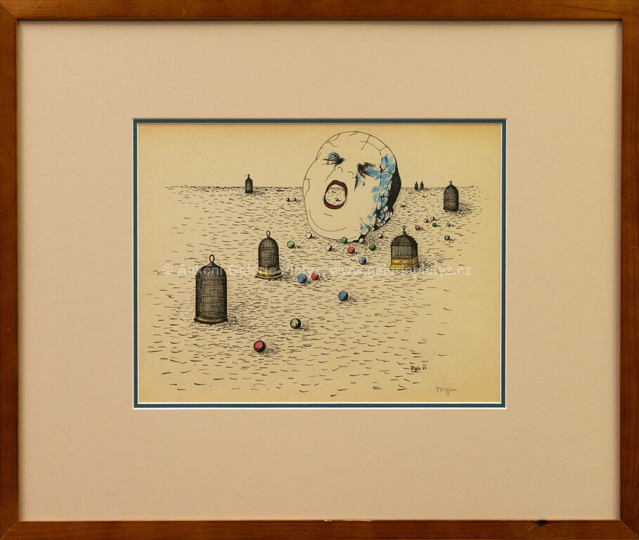 kolorovaná zinkografie/papír, rozměr ve výřezu 27,5 x 35,5 cm, značeno a datováno vpravo dole v tisku a vpravo dole tužkou, paspartováno, zaskleno, rámováno