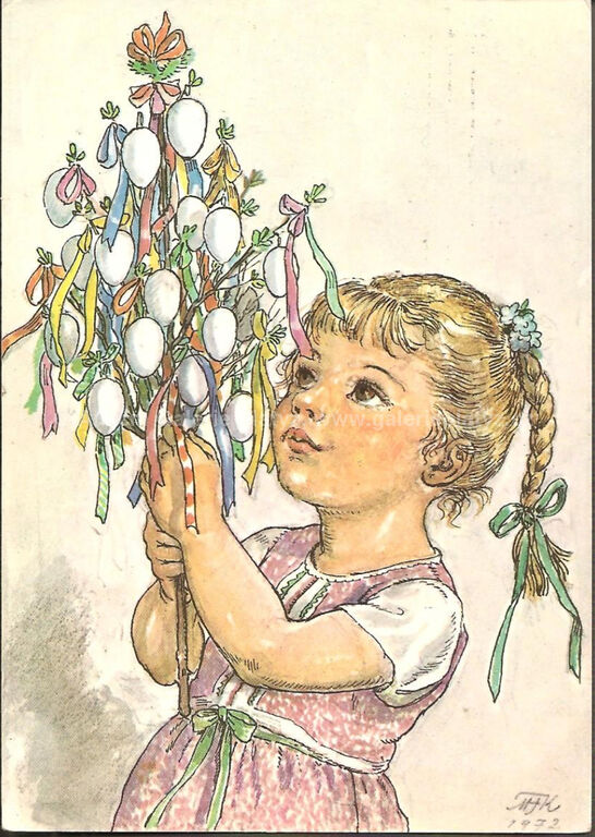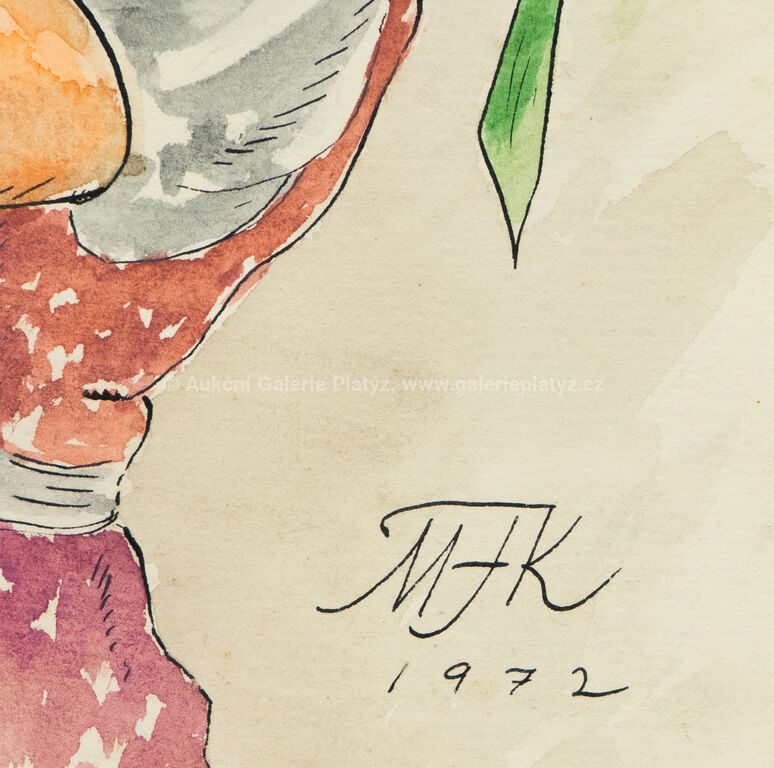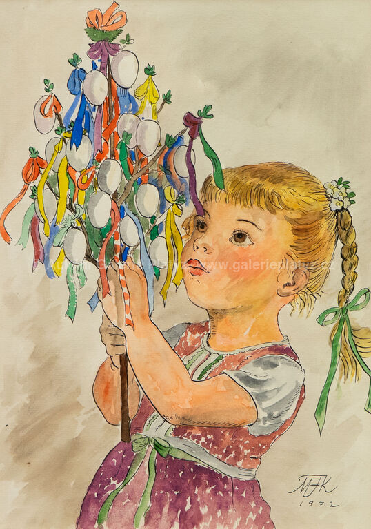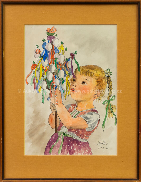 akvarel/papír, rozměr ve výřezu 38,5 x 27 cm, značeno a datováno vpravo dole, paspartováno, zaskleno, rámováno, poškozený rám, původní předloha pro pohlednici