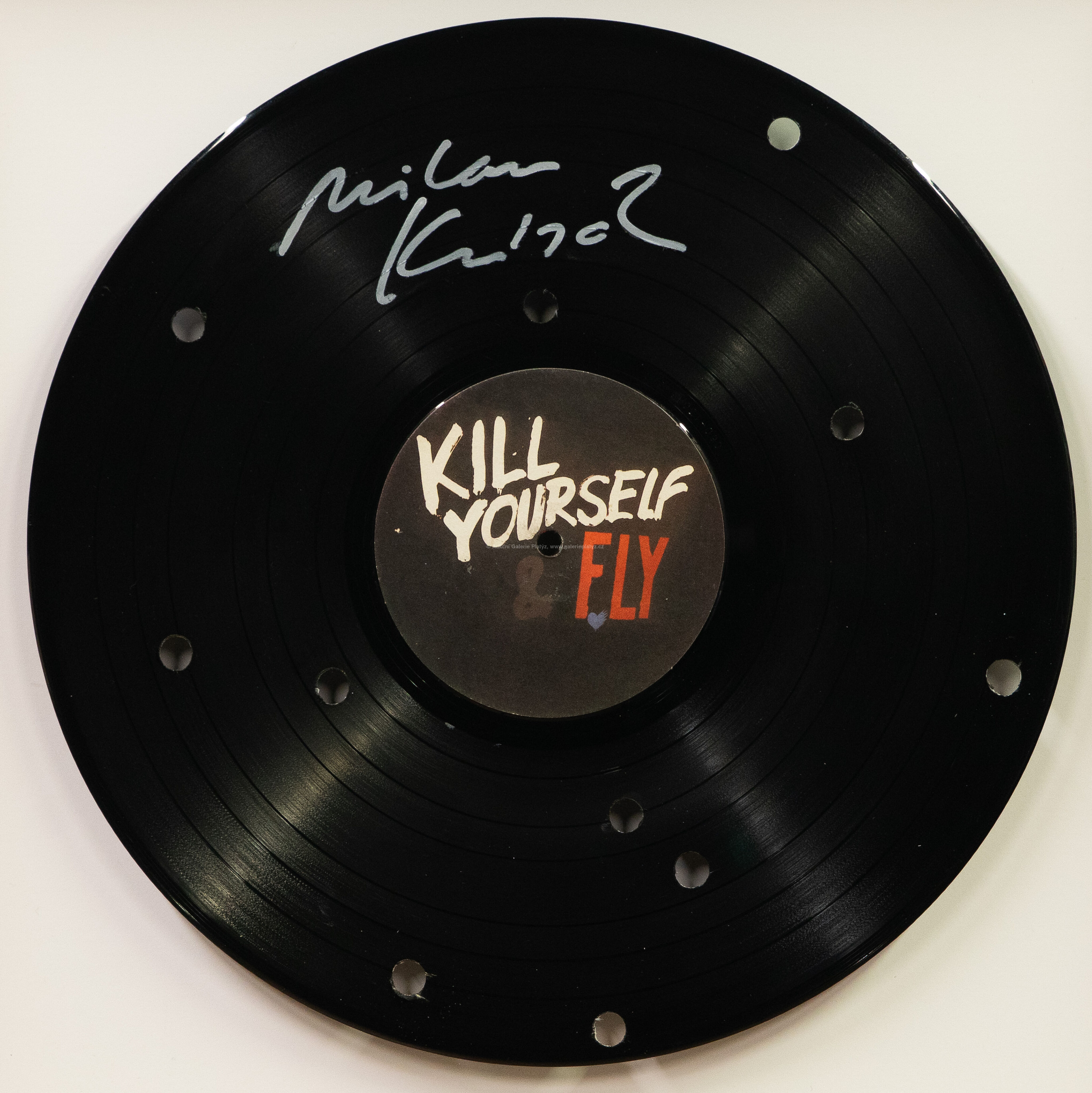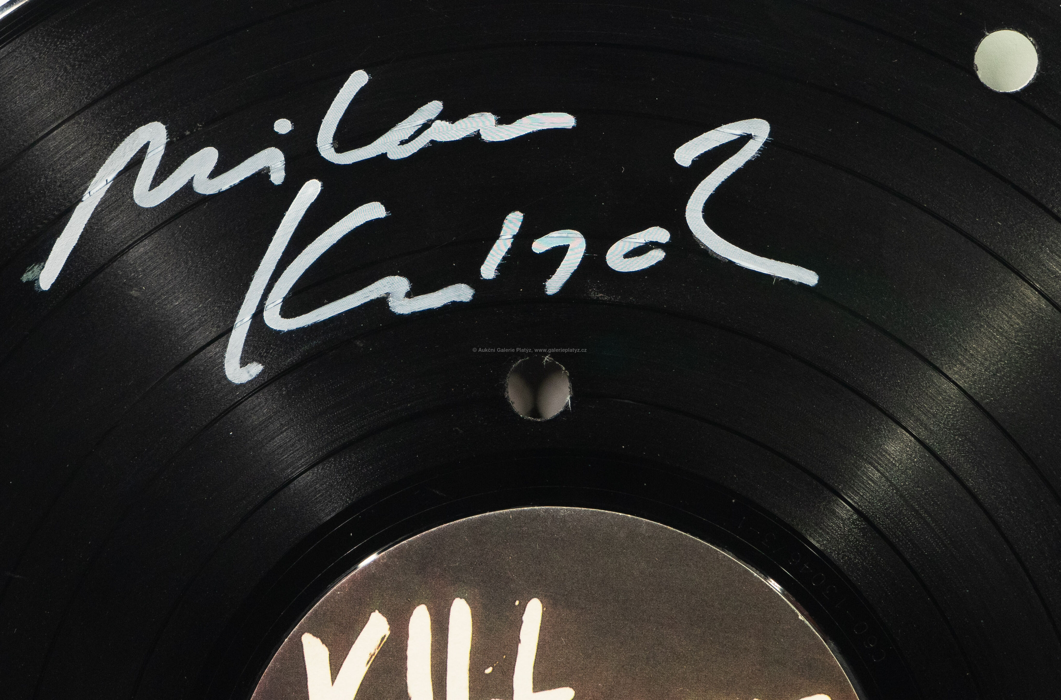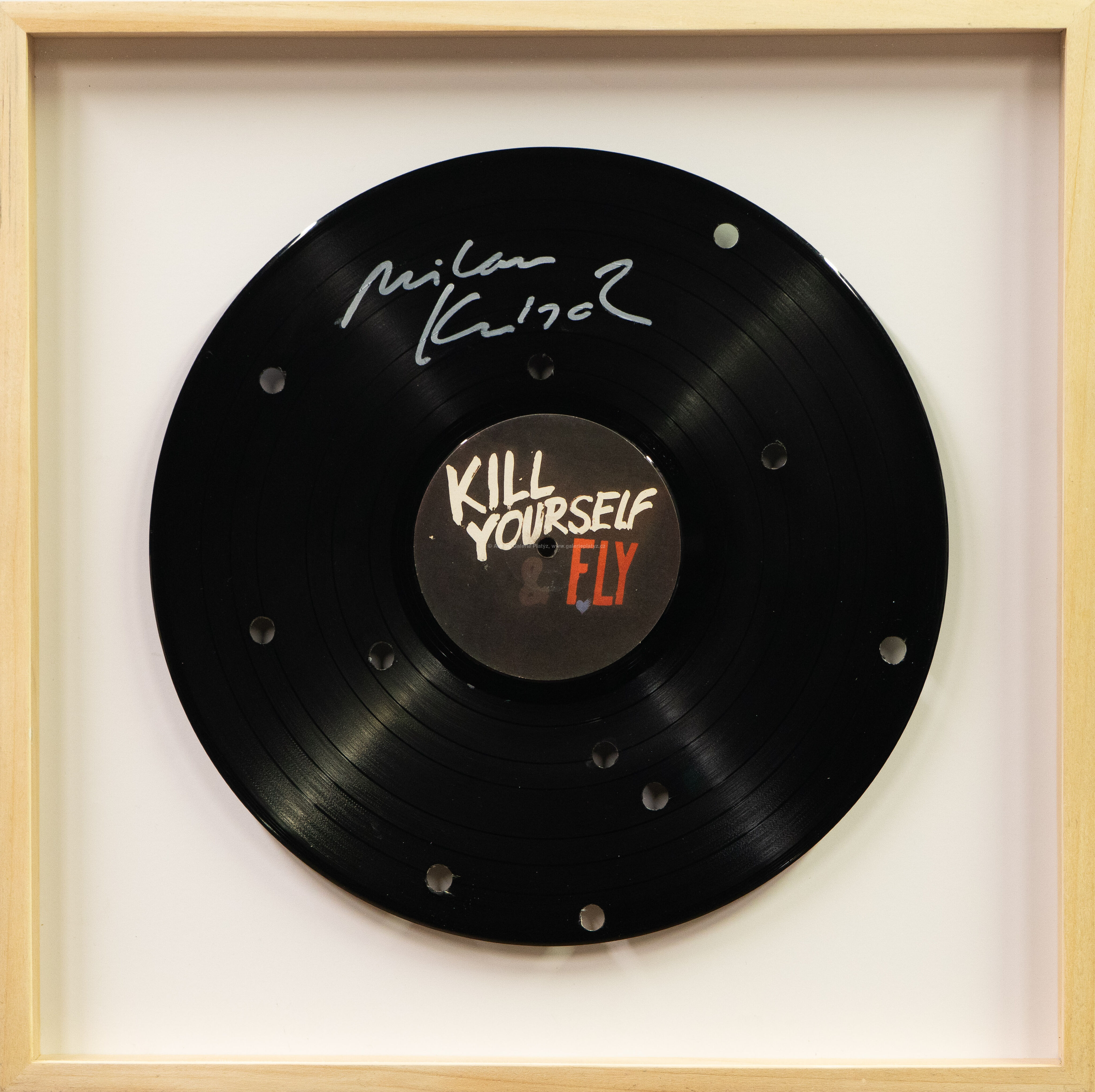 asambláž, gramofonová deska, průměr desky 29,5 cm, značeno v horní části, zaskleno muzeálním sklem, rámováno, deska vznikla ve spolupráci se Zdeňkem Rytířem ve vydavatelství CONDOR v roce 1991 jako příloha alba Obřad hořící mysli v limitovaném nákladu 30 Ks