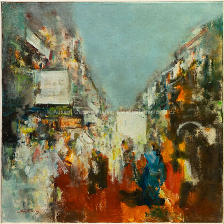 olej/plátno, rozměr 90 x 90 cm, značeno vlevo dole, olištováno
