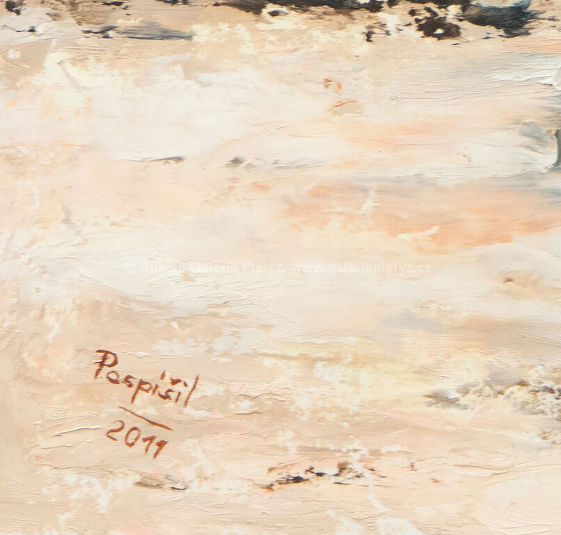 olej/karton, rozměr 29,8 x 42 cm, značeno a datováno vlevo dole, volně loženo, publikováno v knize Miroslav Pospíšil S úvodním slovem Milana Krejčího na str. 82