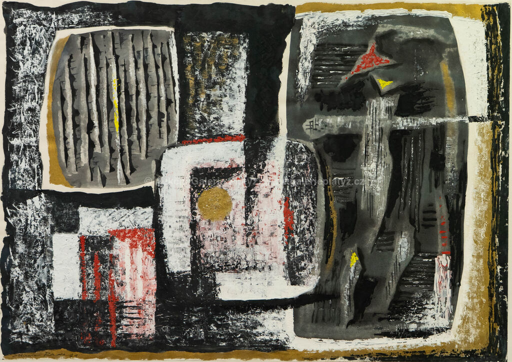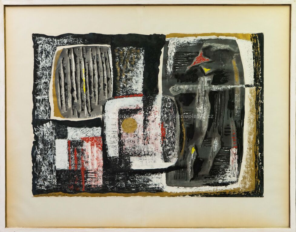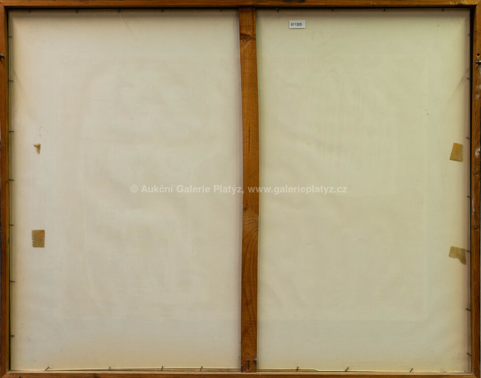 kombinovaná technika/papír, rozměr listu 62 x 88 cm, značeno a datováno vlevo dole, zaskleno, rámováno