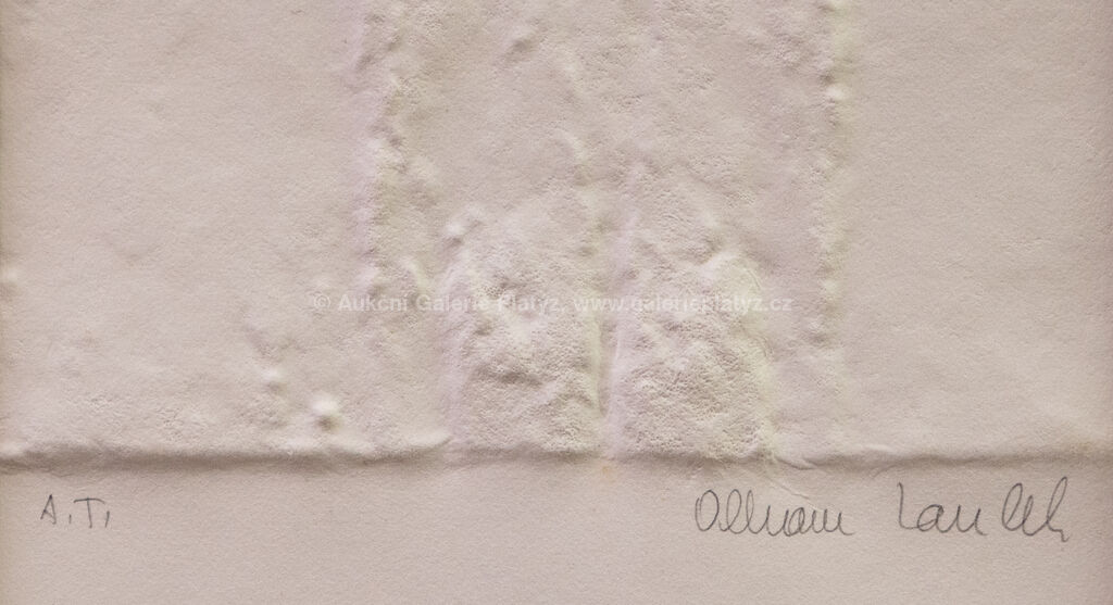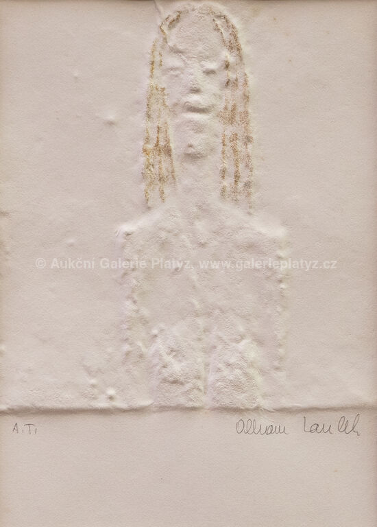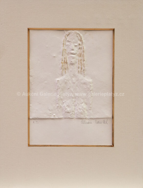 papírový reliéf, ruční papír/zlato, rozměr ve výřezu 19 x 14 cm, značeno a popsáno ve spodní části, paspartováno, konzultováno a pravost potvrzena Nadačním fondem Kmentová Zoubek