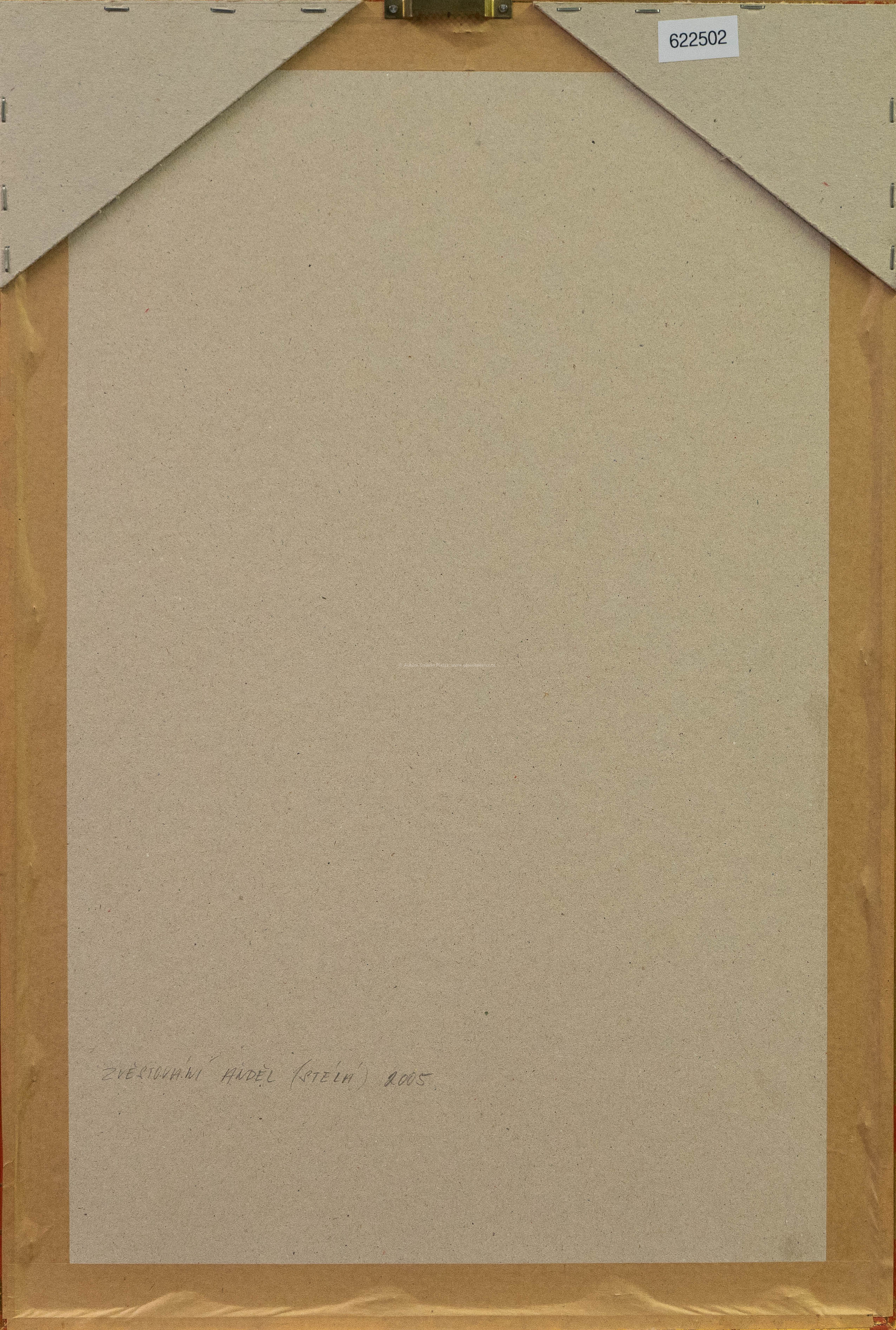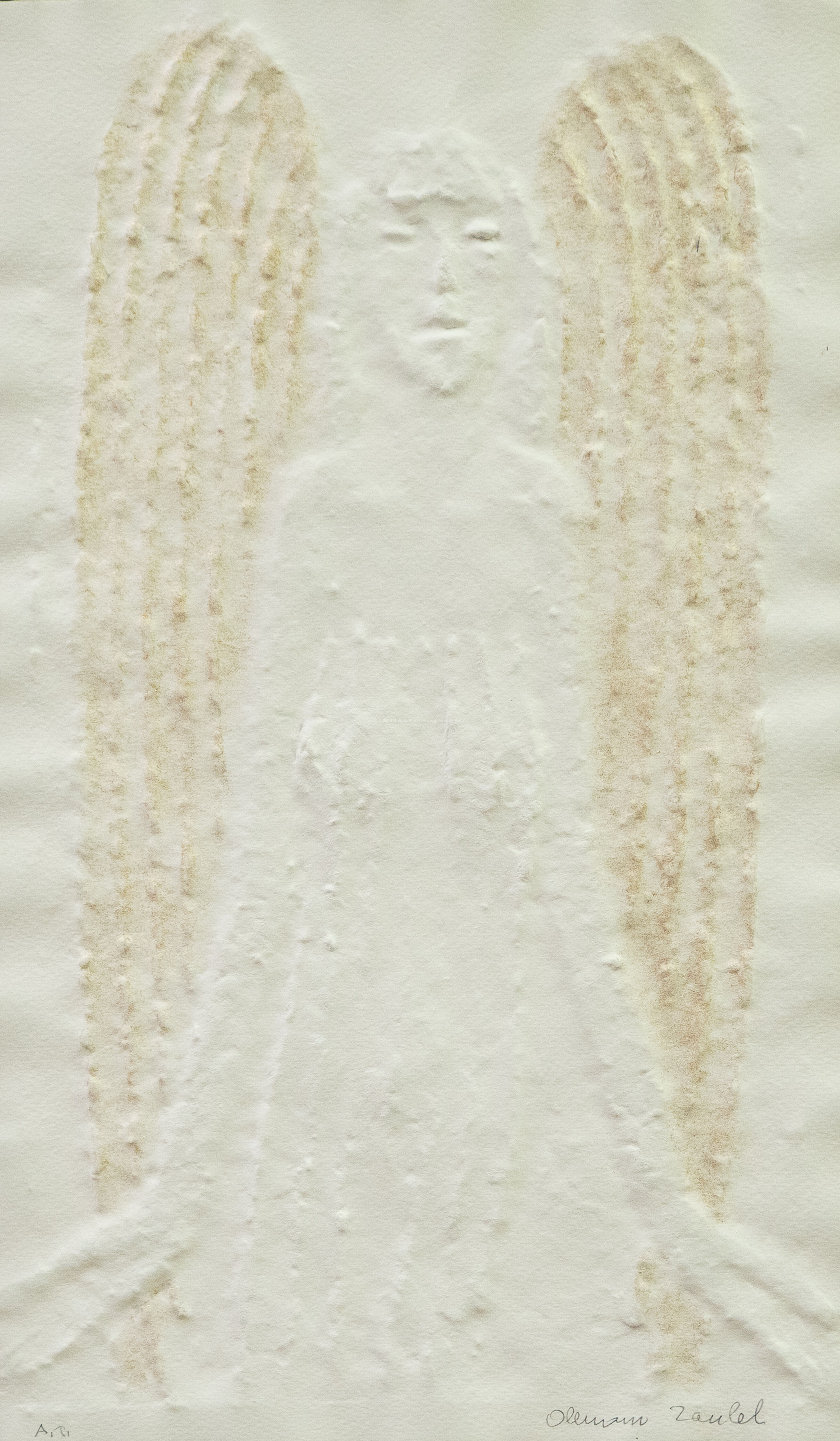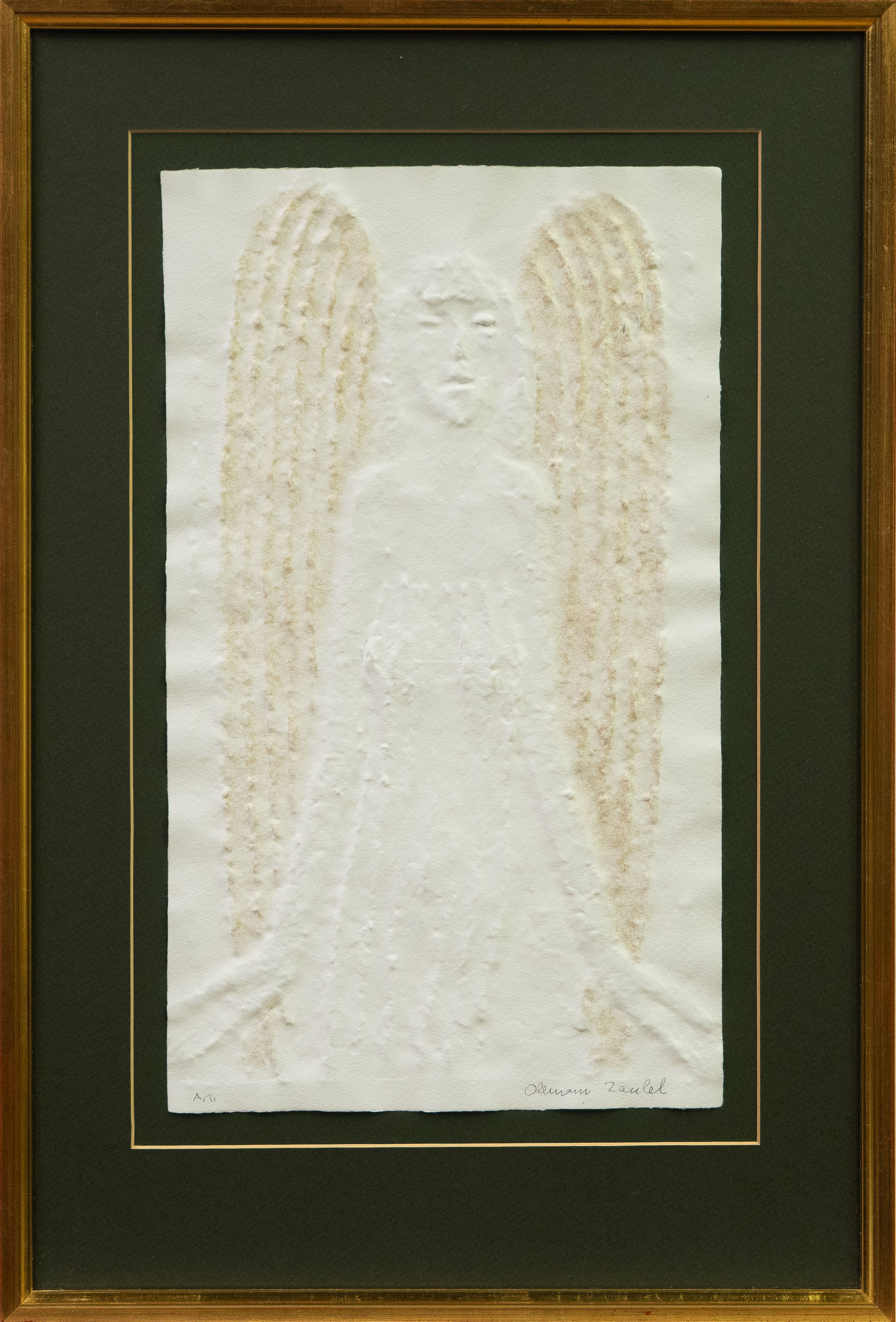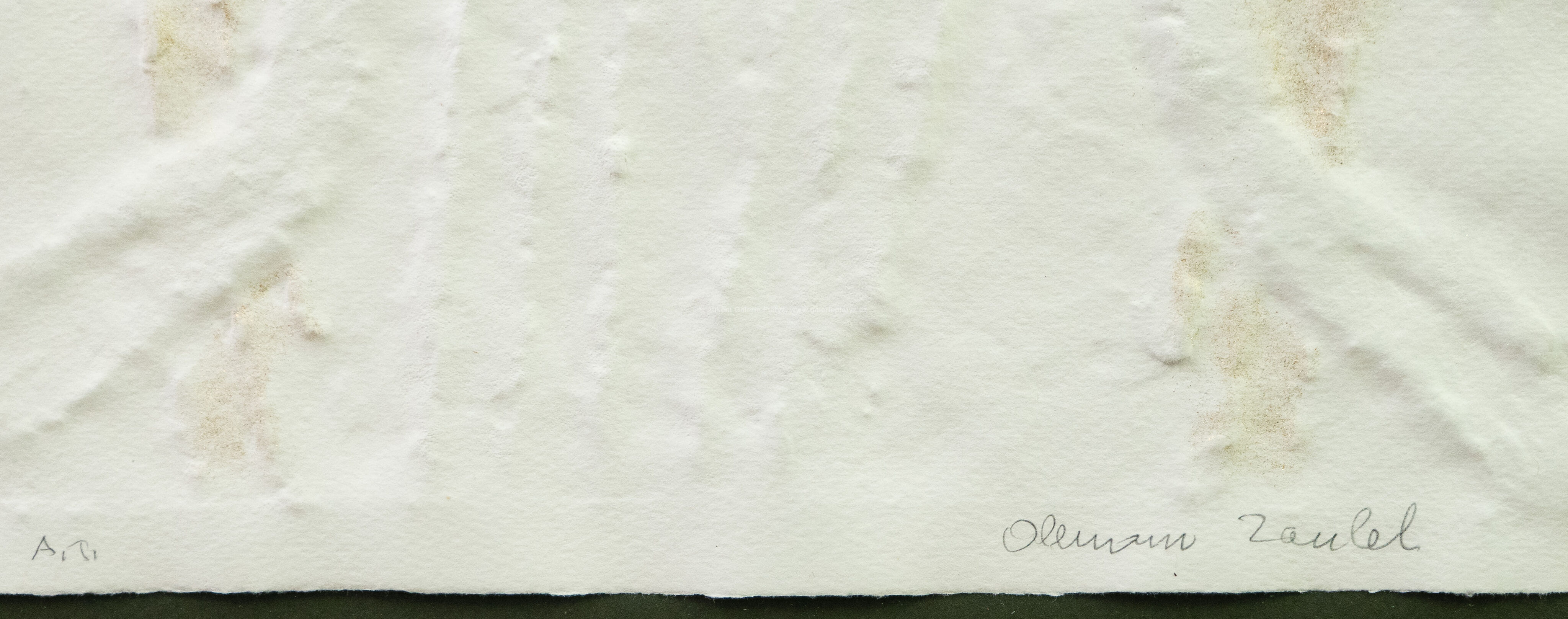 papírový reliéf/ruční papír/zlato, rozměr listu 42 x 24,5 cm, značeno a popsáno ve spodní části, paspartováno, zaskleno, rámováno, konzultováno a pravost potvrzena Nadačním fondem Kmentová Zoubek, vznik 2005