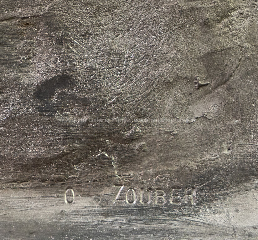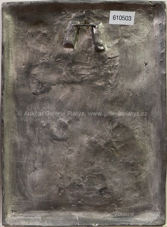 reliéf, olovo/cín/zlato, rozměr 30 x 22 cm, značeno na zadní straně, konzultováno a pravost potvrzena Nadačním fondem Kmentová Zoubek
