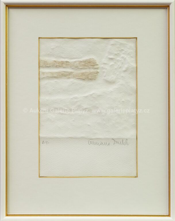 papírový reliéf/zlato/ruční papír, rozměr ve výřezu 21 x 14,5 cm, značeno a popsáno ve spodní části, paspartováno, zaskleno, rámováno, konzultováno a pravost potvrzena Nadačním fondem Kmentová Zoubek (vznik 2000)