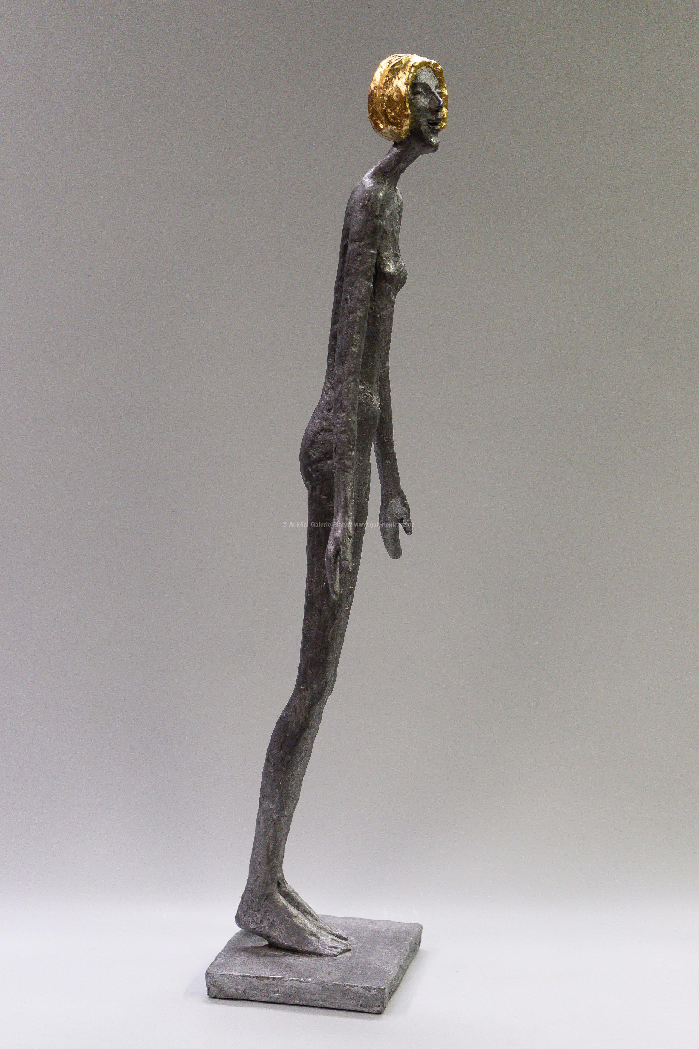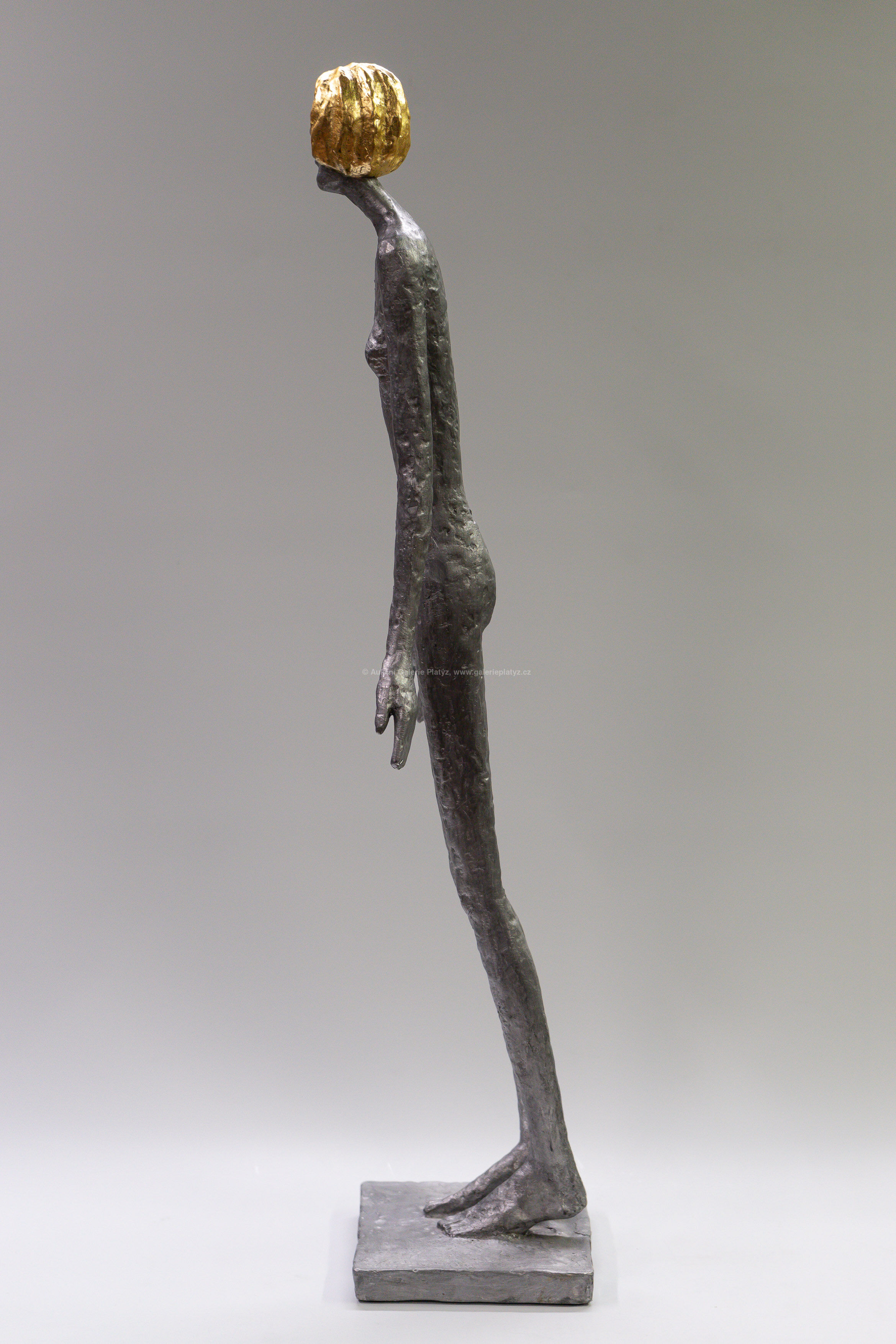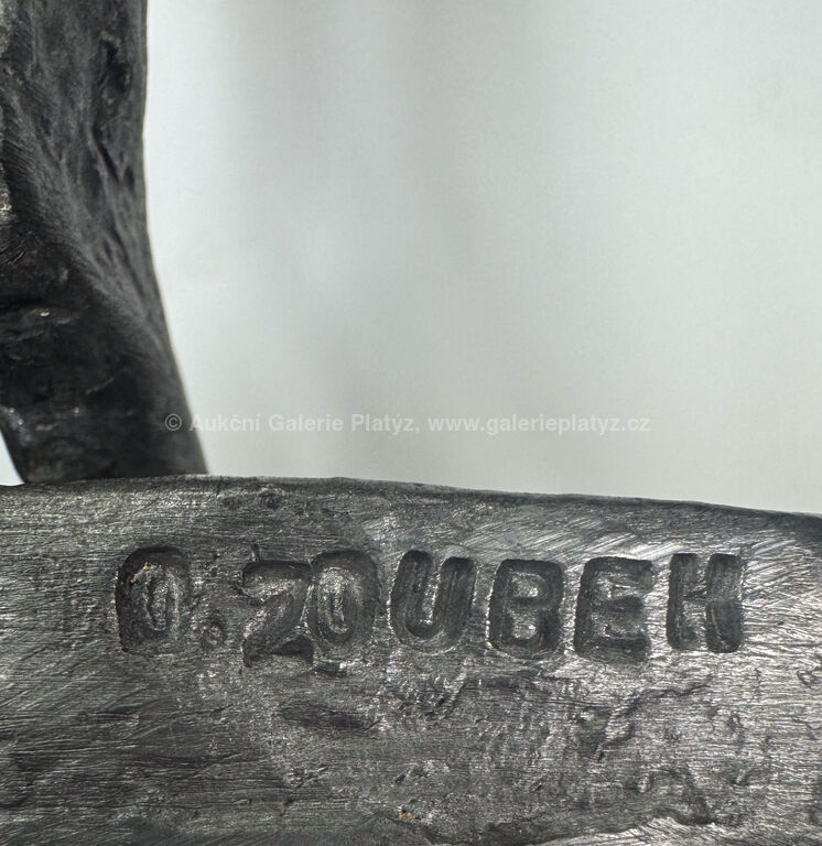 plastika, olovo/cín/zlato, výška 70 cm, značeno na plintu, konzultováno a pravost potvrzena Nadačním fondem Kmentová Zoubek (vznik 1999)