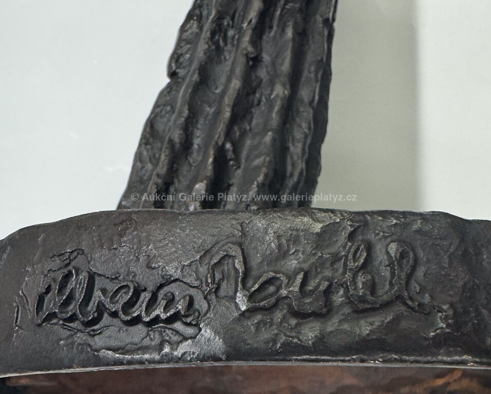 bronzová plastika, patinovaný bronz, výška 70 cm, značeno vzadu na podstavci, konzultováno a pravost potvrzena Nadačním fondem Kmentová Zoubek (vznik 2002)