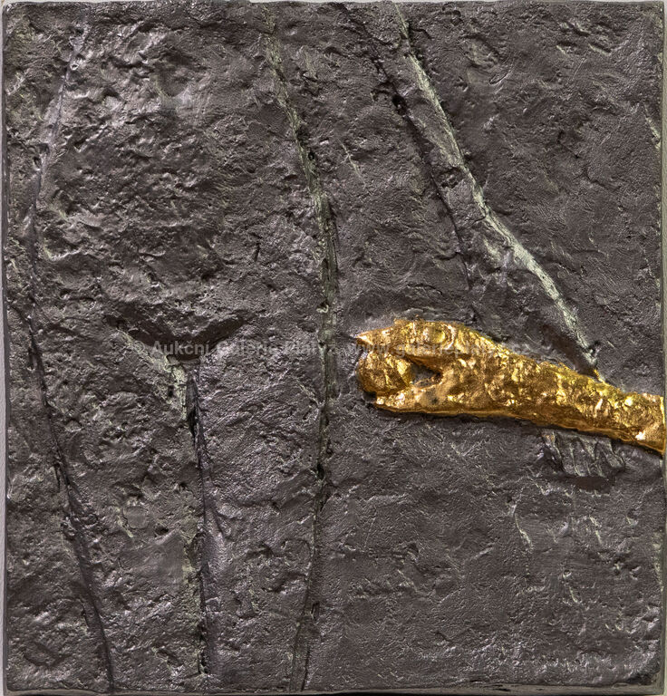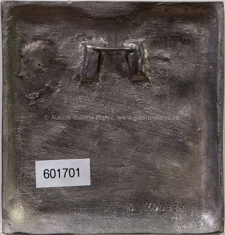 reliéf, olovo/zlato, rozměr 15,5 x 14,6 cm, značeno na zadní straně, přiloženo Potvrzení pravosti díla vystavené Polanou Bregantovou, Nadační fond Kmentová Zoubek