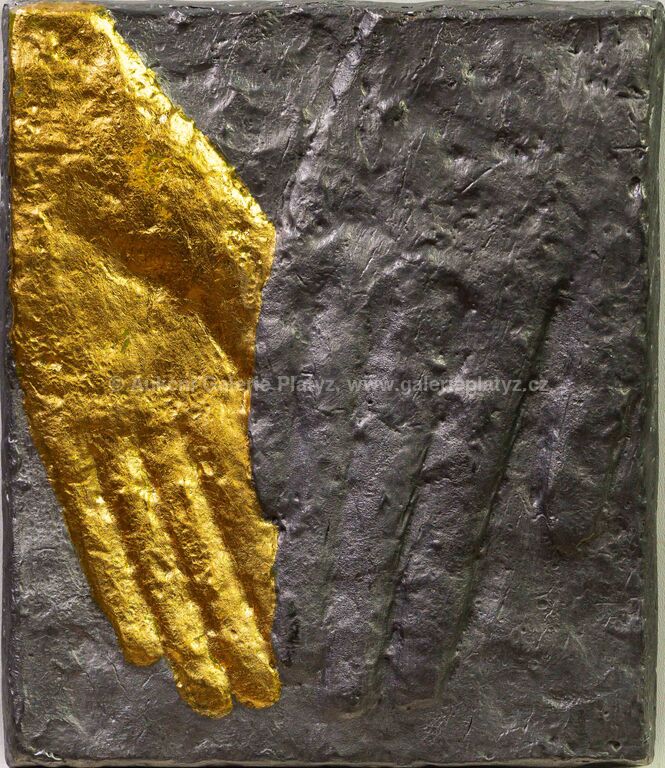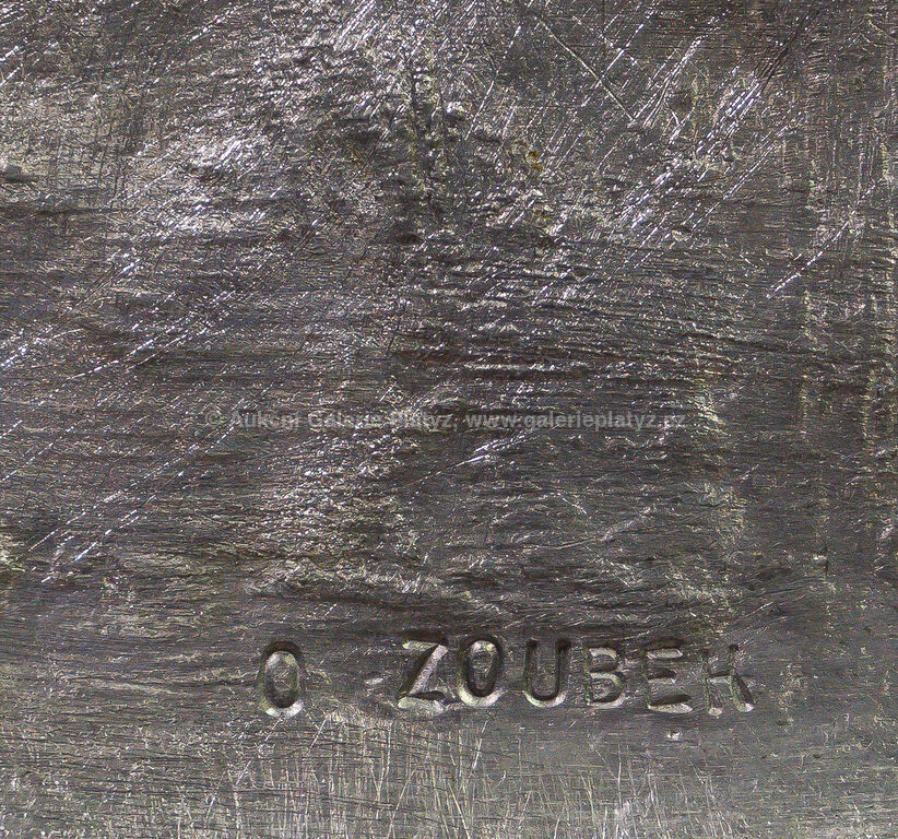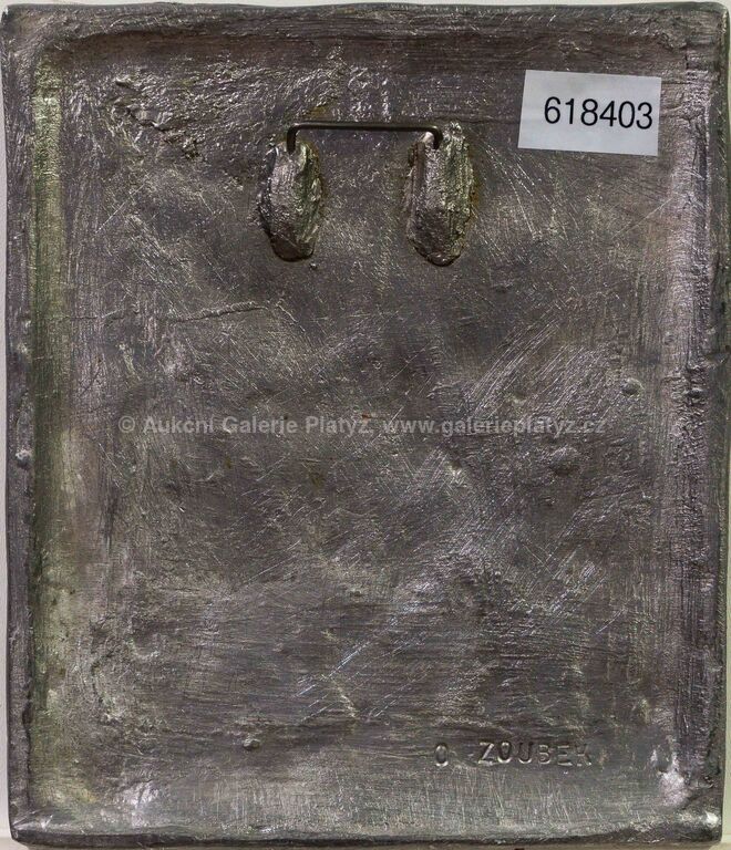 reliéf, olovo/cín/zlato, rozměr 19,5 x 16,5 cm, značeno na zadní straně, konzultováno a pravost potvrzena Nadačním fondem Kmentová Zoubek, vznik 2011