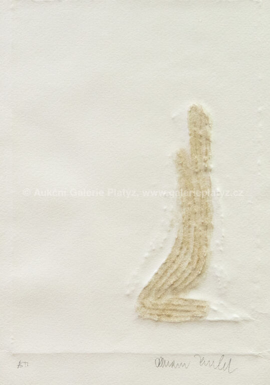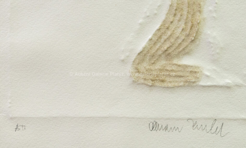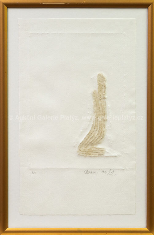 papírový reliéf/ruční papír/zlato, rozměr listu cca 42 x 25 cm, značeno a popsáno ve spodní části, zaskleno, rámováno, oděrky na rámu, konzultováno a pravost potvrzena Nadačním fondem Kmentová Zoubek, vznik 1992