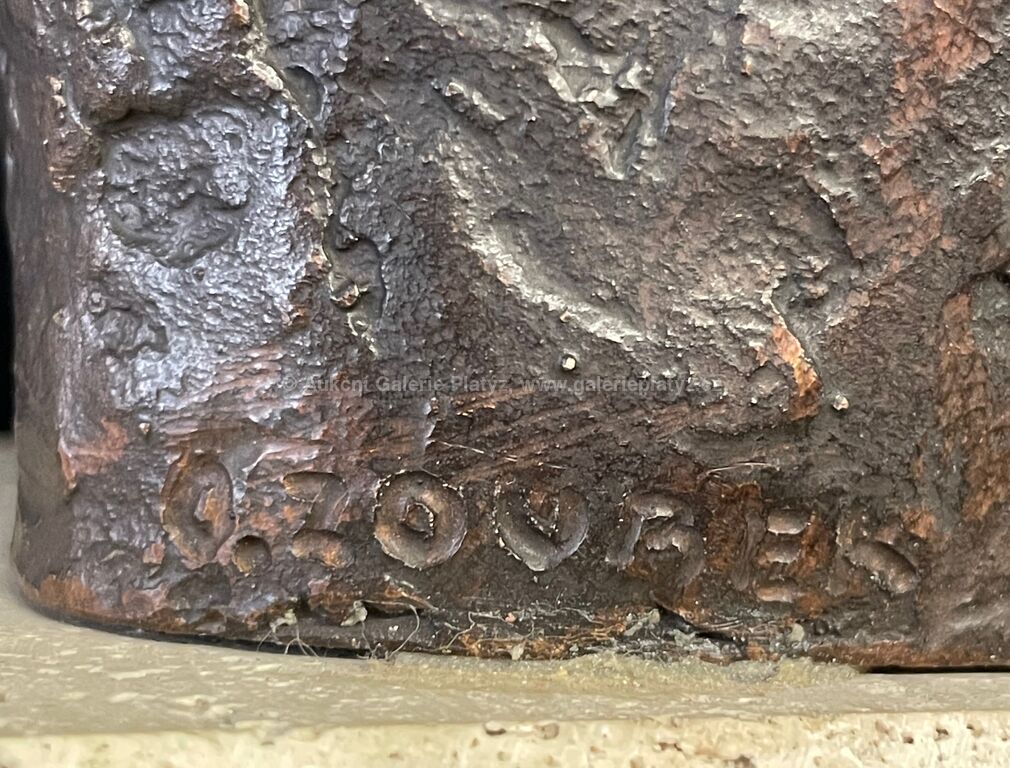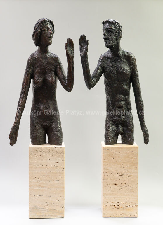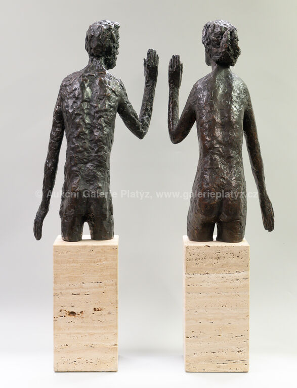 dvě bronzové plastiky na traventinovém podstavci, rozměr každé včetně podstavce 71 cm, výška plastiky 45 cm, značeno na pravé straně, Přiložen certifikát originality díla vystavený autorem (2016)