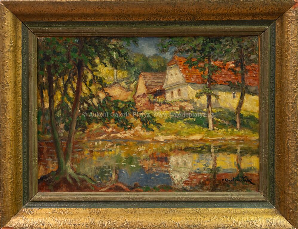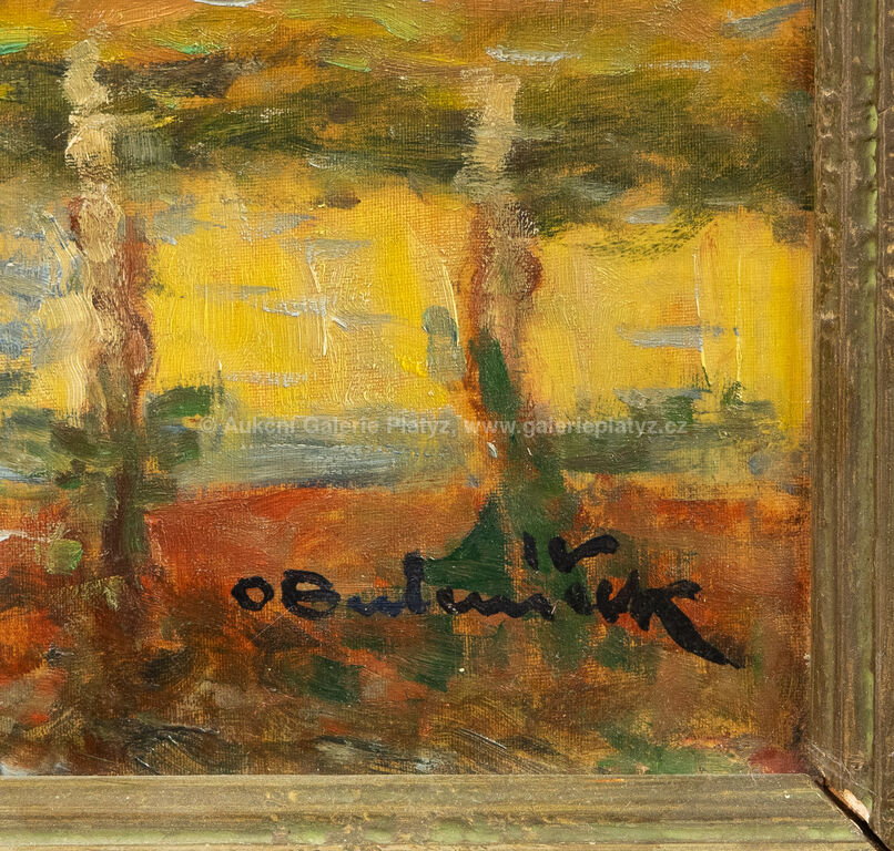 olej/karton, rozměr 35 x 50 cm, značeno vpravo dole, rámováno, poškozený rám