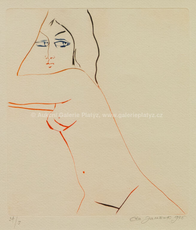 suchá jehla/papír, rozměr ve výřezu 32 x 27,5 cm, značeno, datováno a číslováno ve spodní části, paspartováno, zaskleno, rámováno