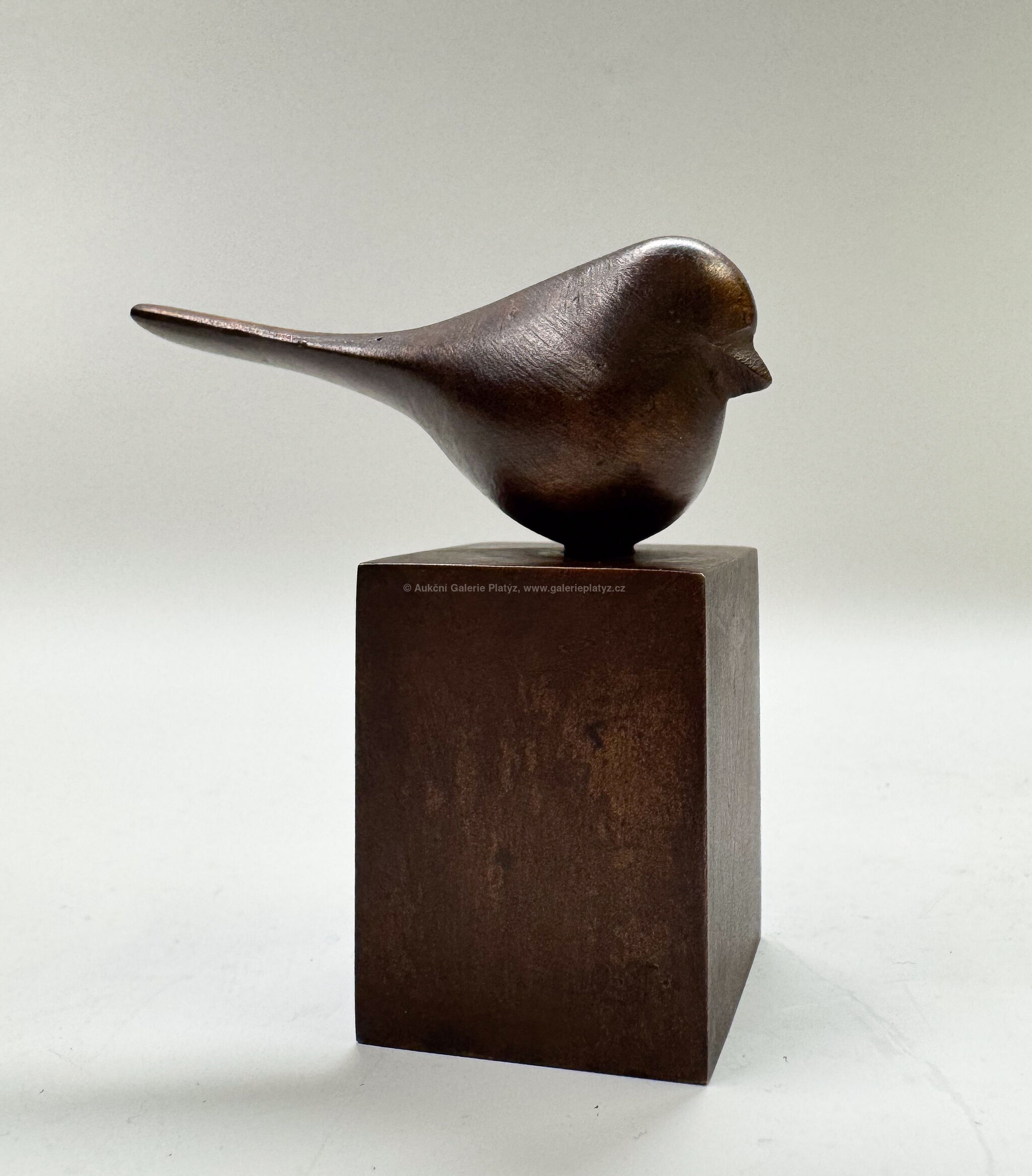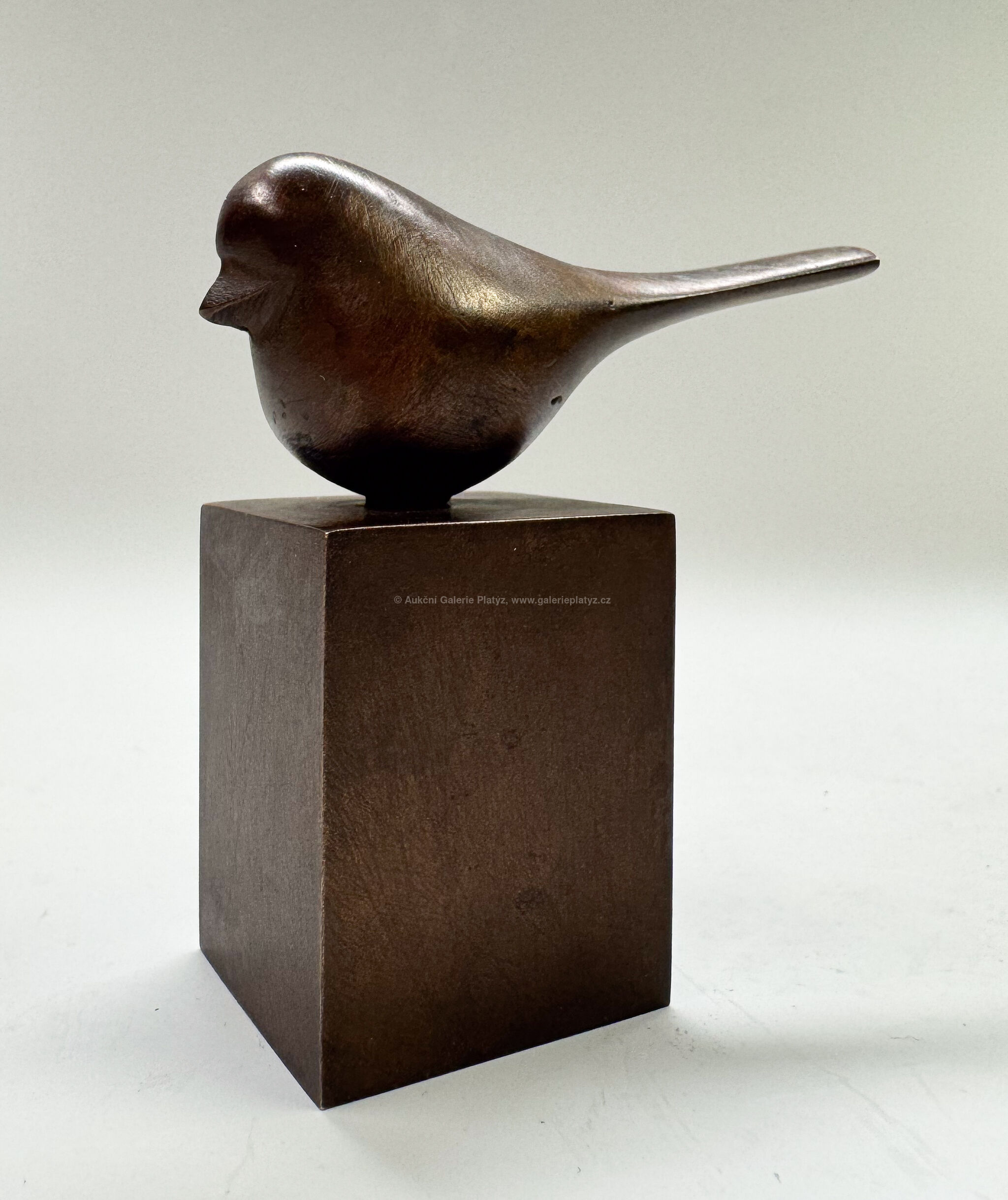 bronzová plastika, patinovaný bronz, rozměr 6,5 x 6 x 2,5 cm, značeno na podstavci, přiložen Certifikát autorství vystavený synem autora, Ing. Tomášem Janečkem 2021, kat. č. 9904
