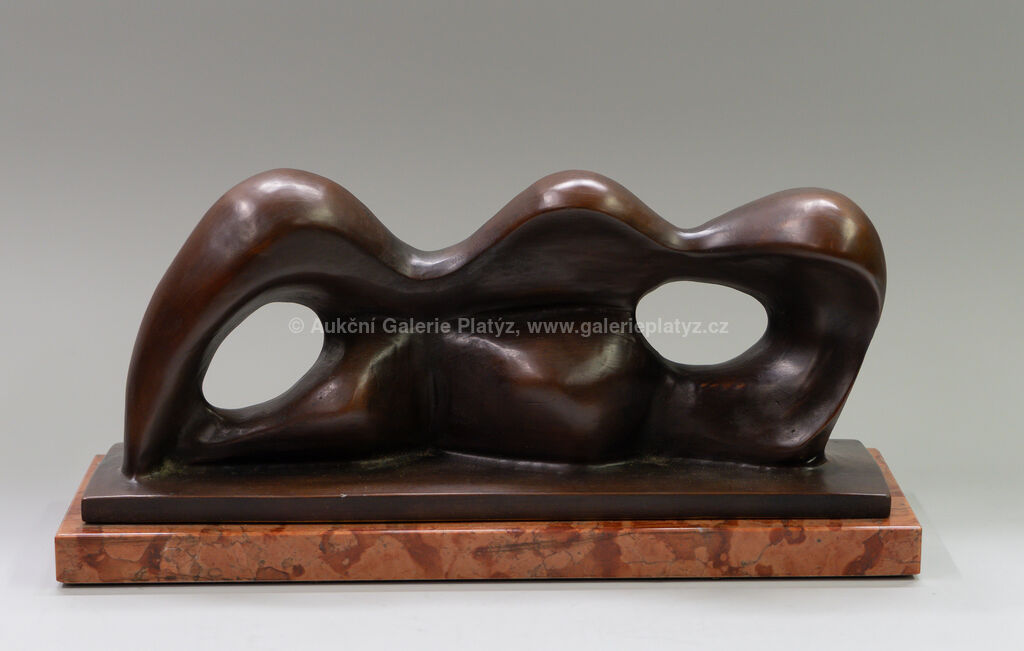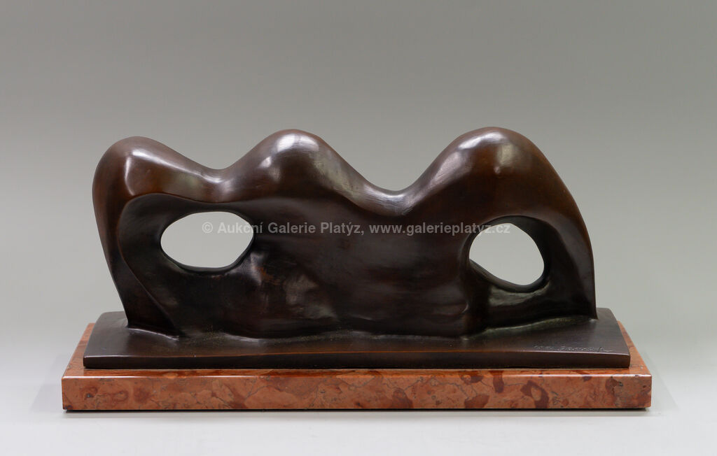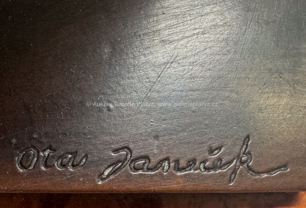 bronzová plastika, patinovaný bronz na mramorovém podstavci, celkový rozměr 15,5 x 33 x 11 cm, značeno vpravo dole