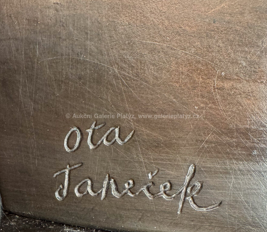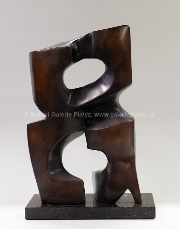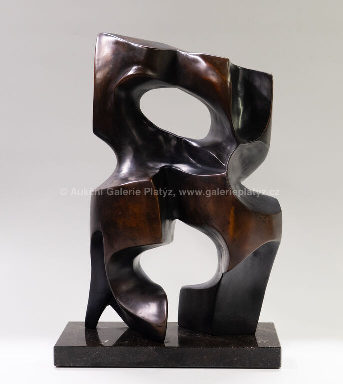 bronzová plastika na mramorovém podstavci, patinovaný bronz, výška vč. podstavce 45 cm, rozměr plastiky 42 x 26 x 12 cm, značeno na zadní straně,po