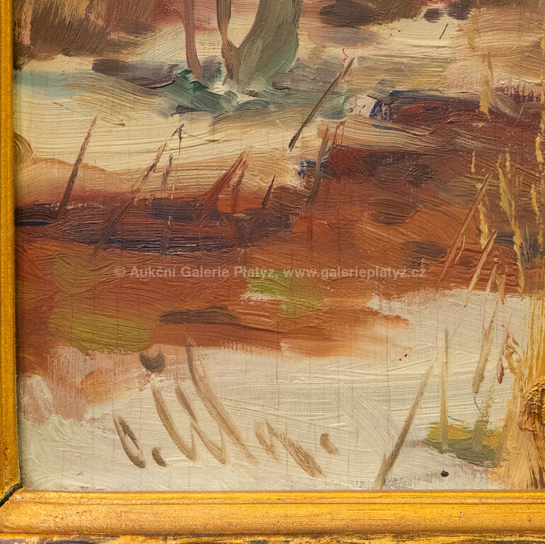 olej/překližka, rozměr 50 x 65 cm, značeno vlevo dole, rámováno, oděrky na rámu, nepatrné prasklinky v podkladu malby