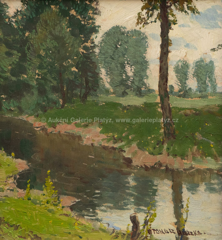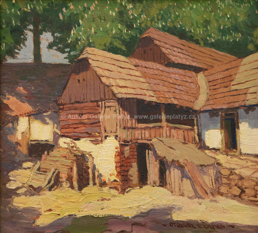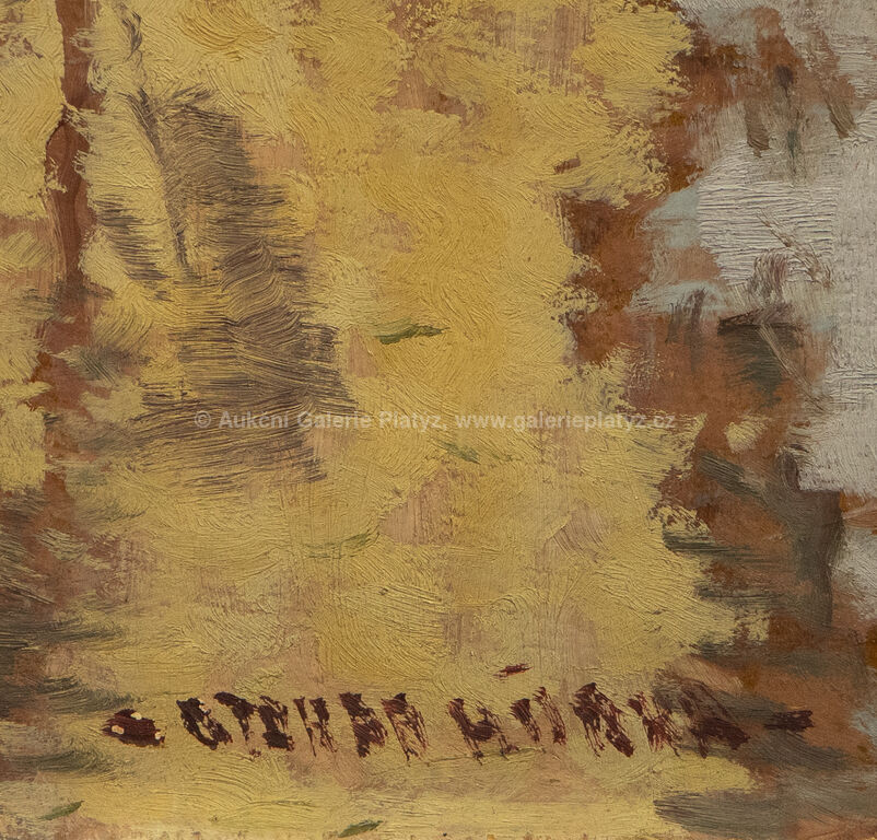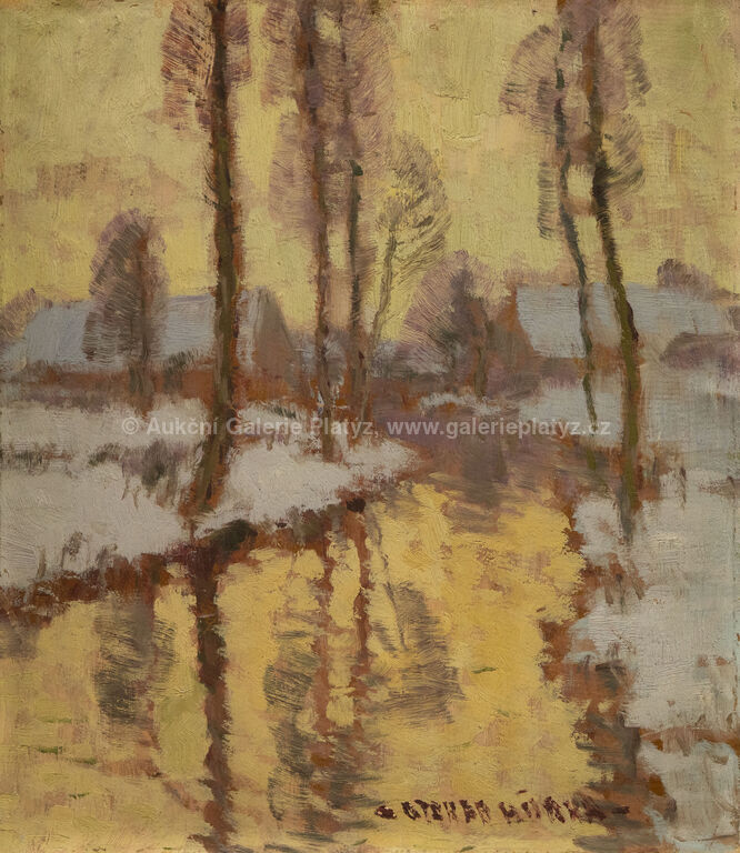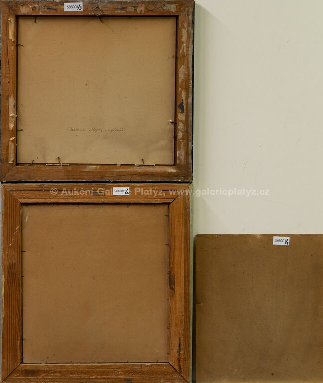 Zima nad řekou: olej/karton, rozměr 32,5 x 28 cm, značeno ve spodní části, nerámováno, U řeky: olej/karton, rozměr 34 x 31,5 cm, značeno vpravo dole, rámováno, poškozený rám, Před stavením: olej/karton, rozměr 32 x 34,5 cm, značeno vpravo dole, rámováno