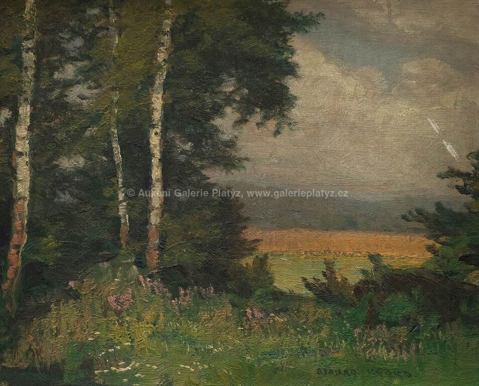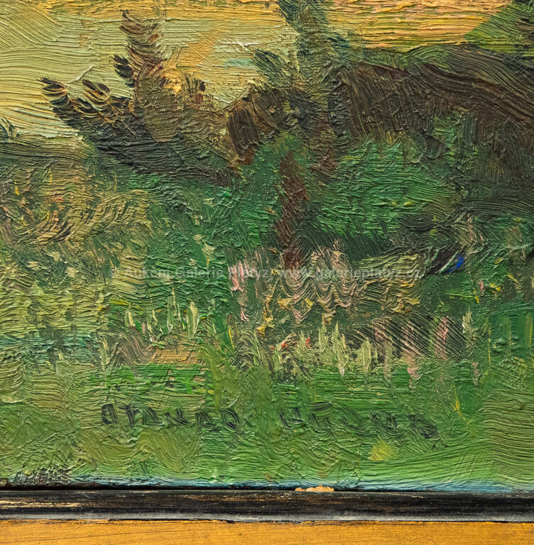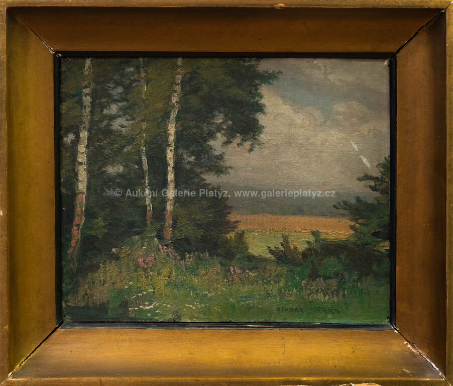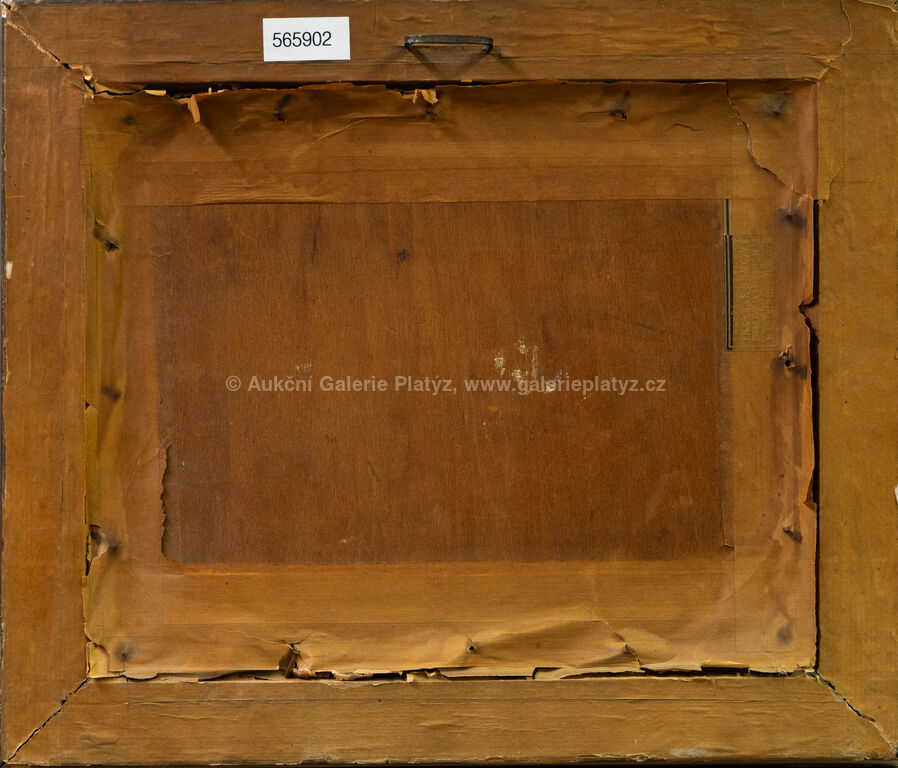 olej/překližka, rozměr 23,5 x 29,5 cm, značeno vpravo dole, rámováno, oděrky v malbě, poškozený rám