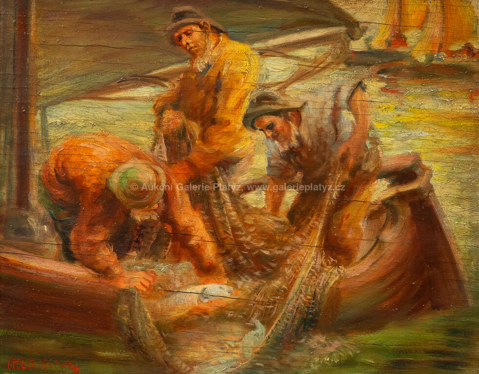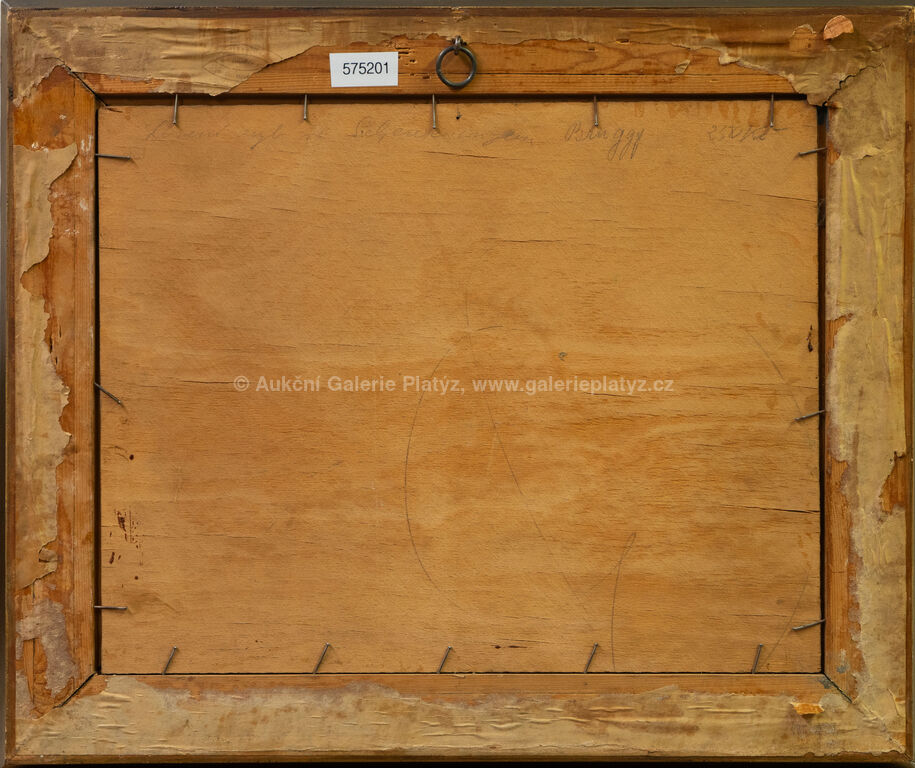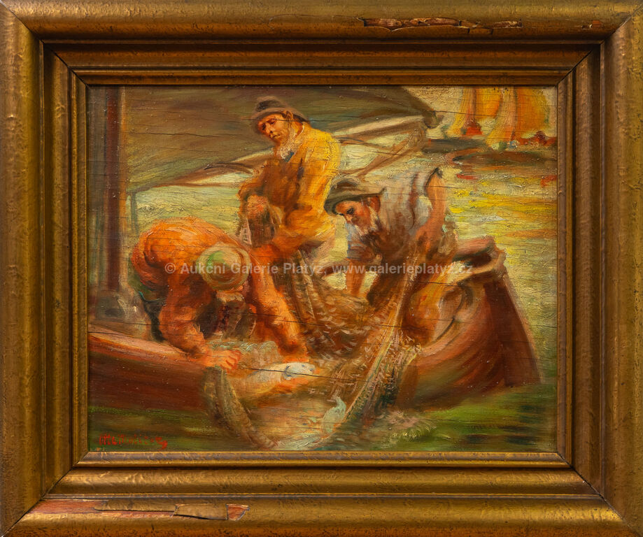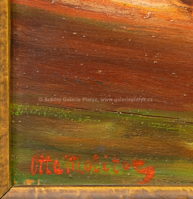 olej/překližka, rozměr 30 x 38 cm, značeno vlevo dole, rámováno, poškozený rám, popraskaná překližka