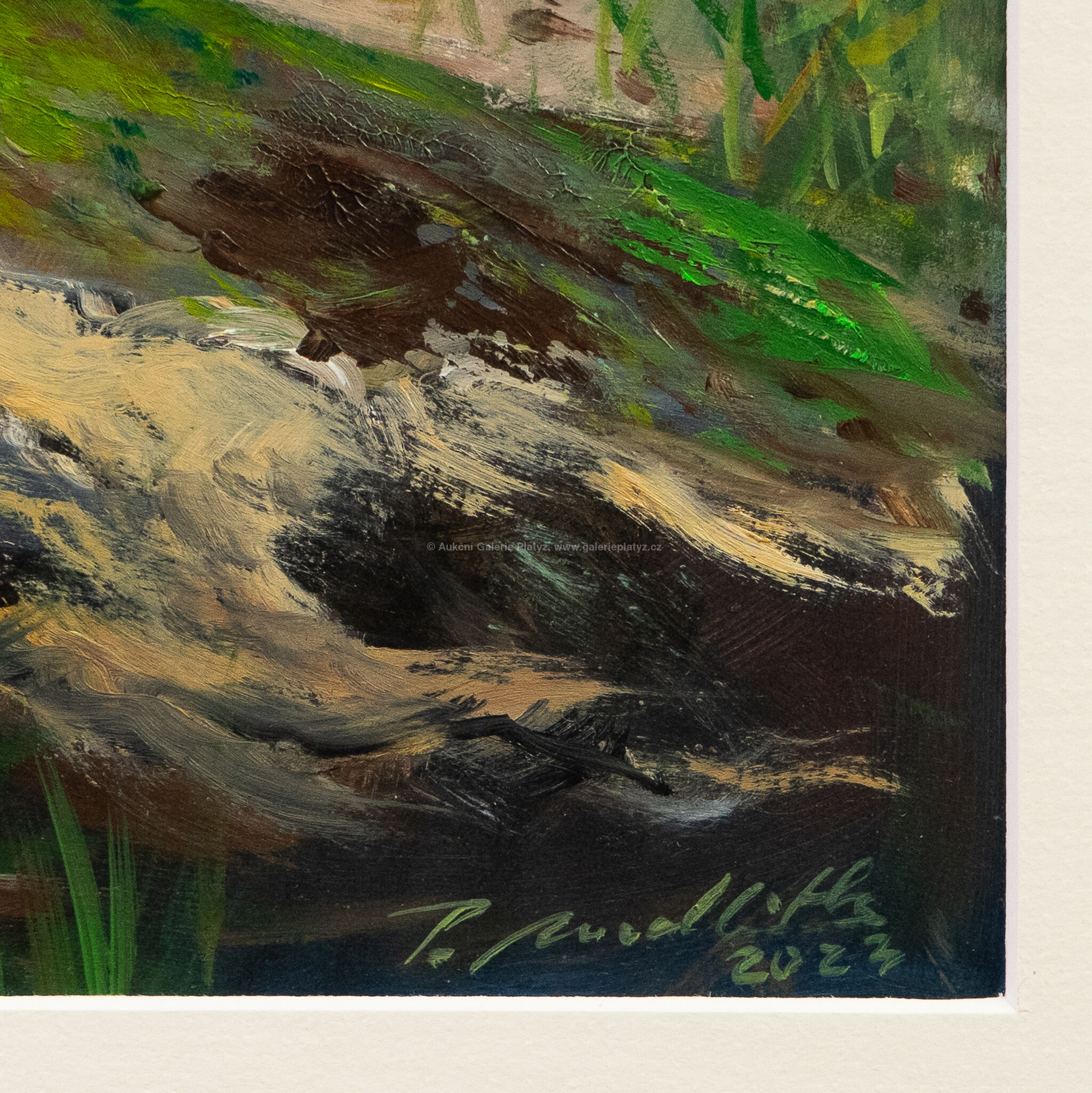 olej/karton, rozměr ve výřezu 43,5 x 31,5 cm, značeno a datováno vpravo dole, paspartováno, zaskleno muzeálním sklem, rámováno