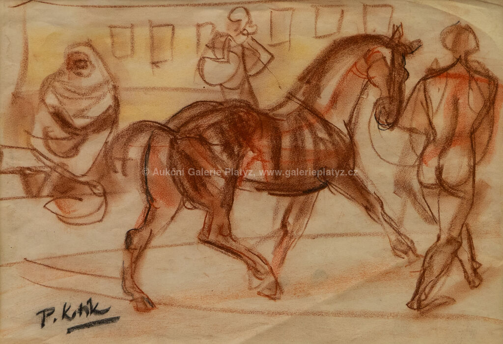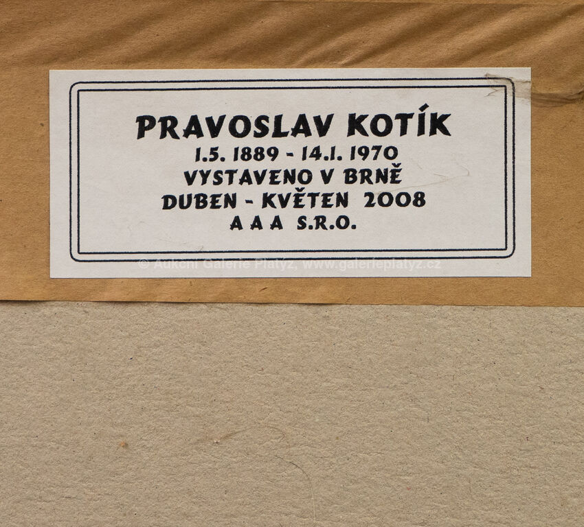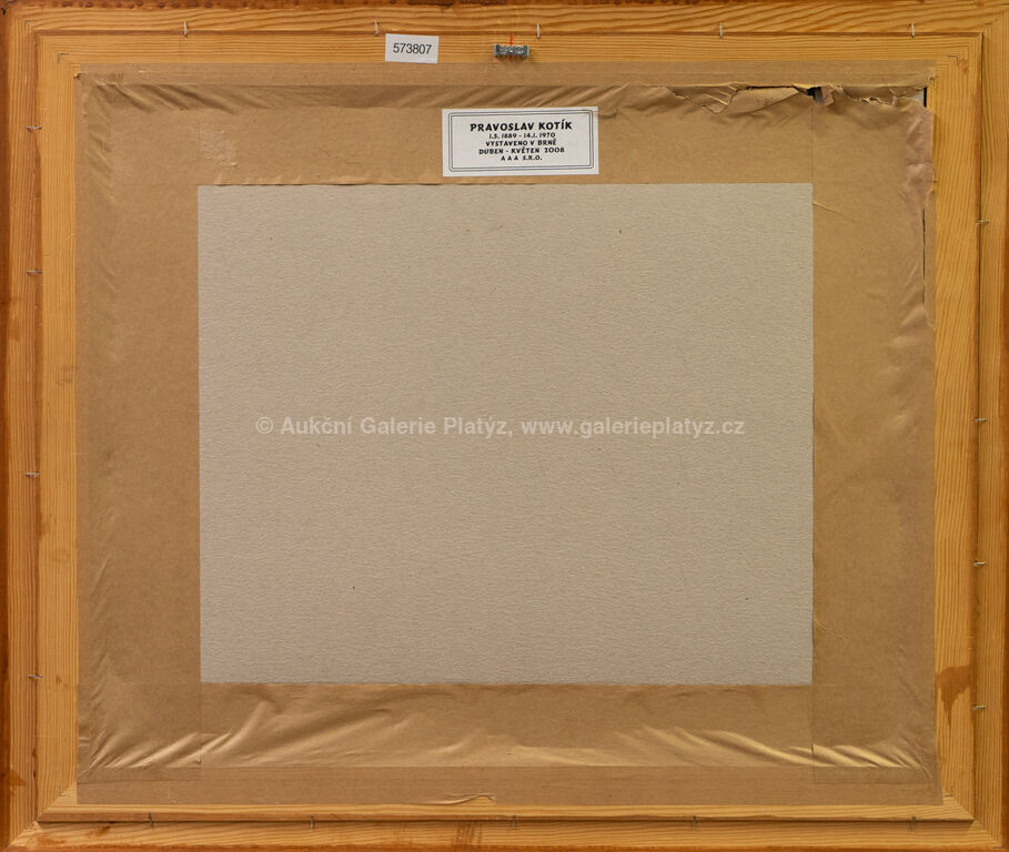 pastel/papír, rozměr ve výřezu 27,5 x 40 cm, značeno vlevo dole, paspartováno, zaskleno, rámováno, publikováno v monografii Pravoslav Kotík, práce na papíru, kresby, malby hlavně z 60. let 20. stol., č. 4, 1953