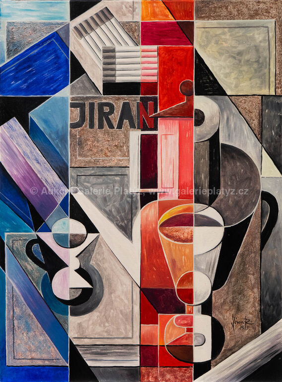 Monochromatické kubistické zátiší s konvicí na čaj a cukřenkou
