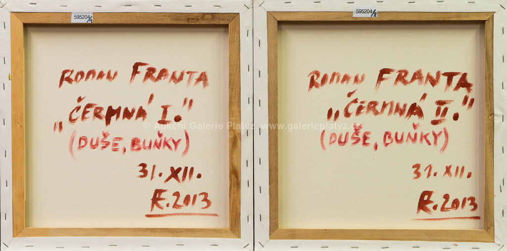 popis každé položky: akryl/plátno, rozměr 40 x 40 cm, značeno, datováno a popsáno na zadní straně, přiložena kniha RAT ART, Galerie Havelka, Praha 2019
