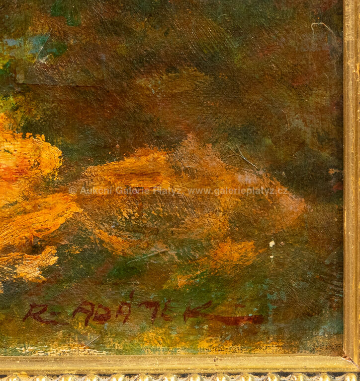olej/plátno fixované na překližce, rozměr 41,5 x 37,5 cm, značeno vpravo dole, rámováno