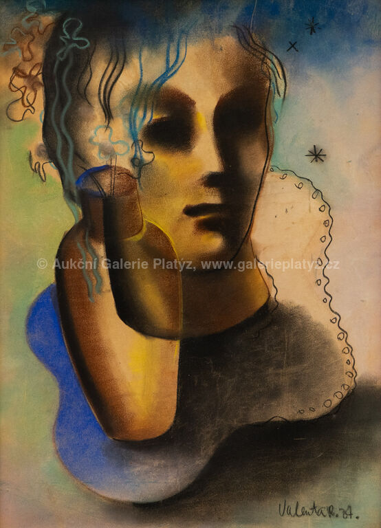 pastel/papír, rozměr 57 x 41 cm, značeno a datováno vpravo dole, zaskleno, rámováno, poškozený rám