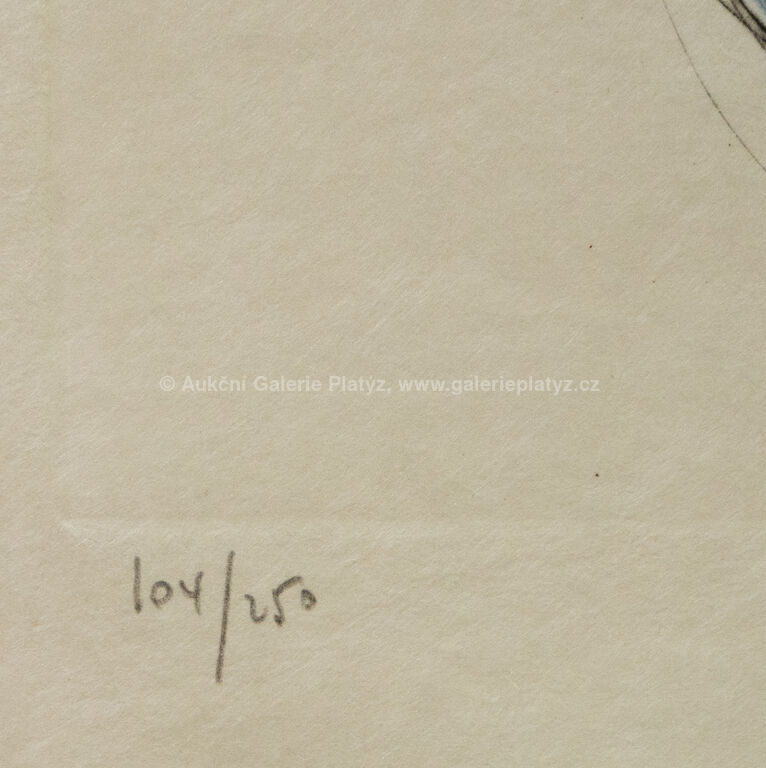 kolorovaný lept/ruční papír Japan, rozměr ve výřezu 47 x 63 cm, značeno a číslováno ve spodní části, paspartováno, zaskleno, rámováno, oděrky na rámu, uvedeno: A.Field: "The Official Catalogue of the Graphic Works of Salvador Dalí" No.75-4J p.101, 1996