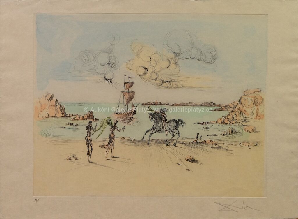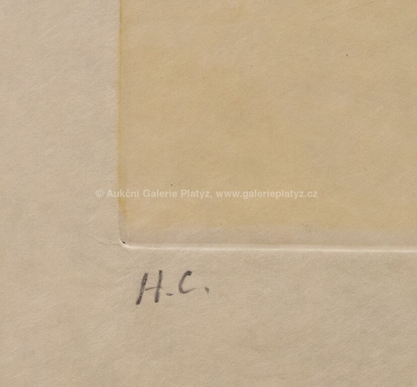barevná litografie/ruční papír, rozměr listu cca 56 x 77 cm, značeno a popsáno tužkou ve spodní části, zaskleno, rámováno