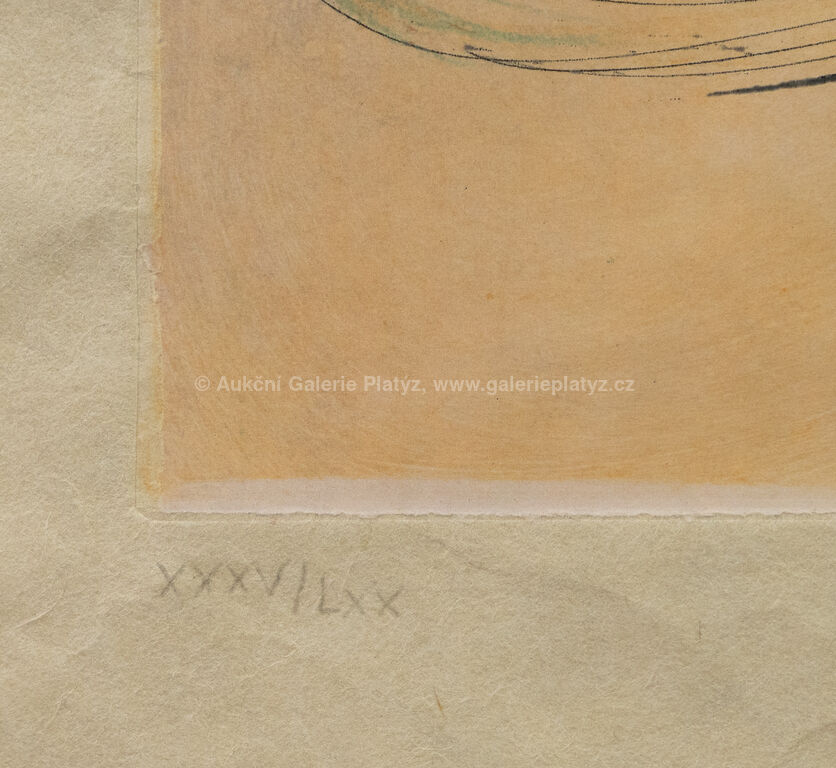 barevný lept/akvatinta/ruční papír Japan, rozměr listu cca 60 x 45 cm, značeno a číslováno tužkou ve spodní části, zaskleno, rámováno