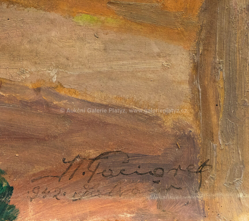 olej/karton, rozměr 50 x 69 cm, značeno, datováno a popsáno vpravo dole, rámováno, poškozený rám