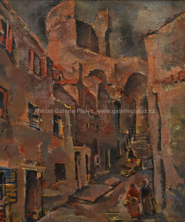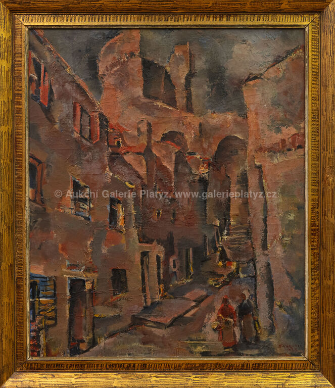 olej/plátno, rozměr 87 x 73 cm, značeno a datováno vpravo dole, rámováno, oděrky na rámu, barva místy krakelovaná
