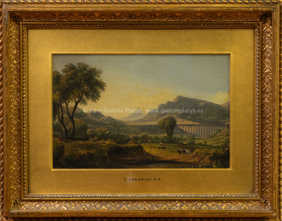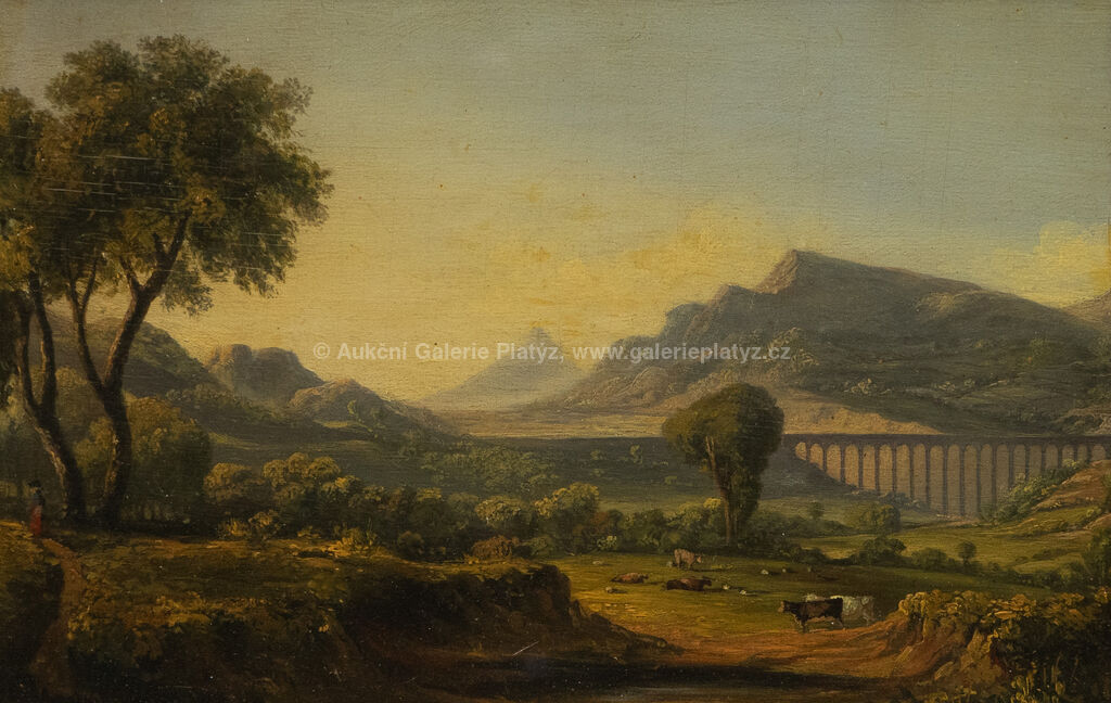 olej/dřevěná deska, rozměr ve výřezu 15,5 x 23,5 cm, neznačeno, paspartováno, zaskleno, rámováno