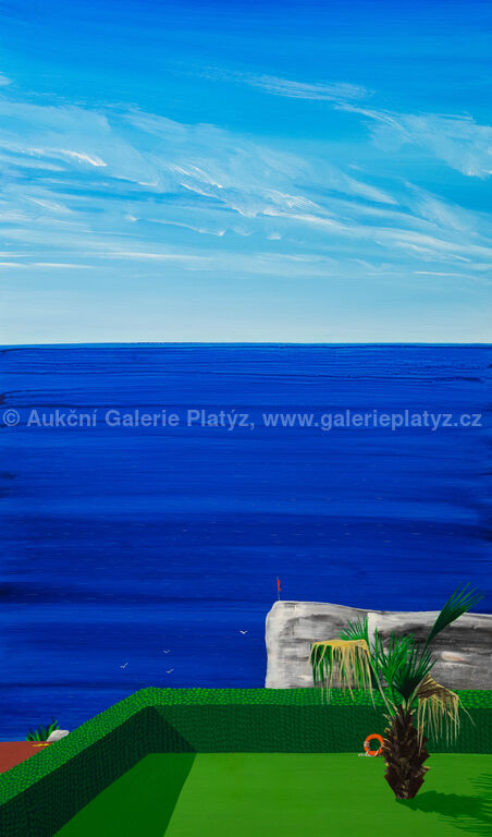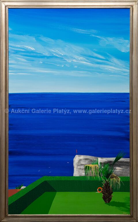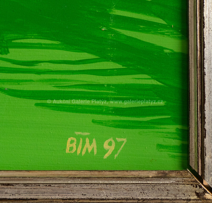 akryl/sololit, rozměr 184 x 110 cm (VELKÝ FORMÁT), značeno a datováno vpravo dole, rámováno, oděrky na rámu, na několika místech drobné oděrky v malbě