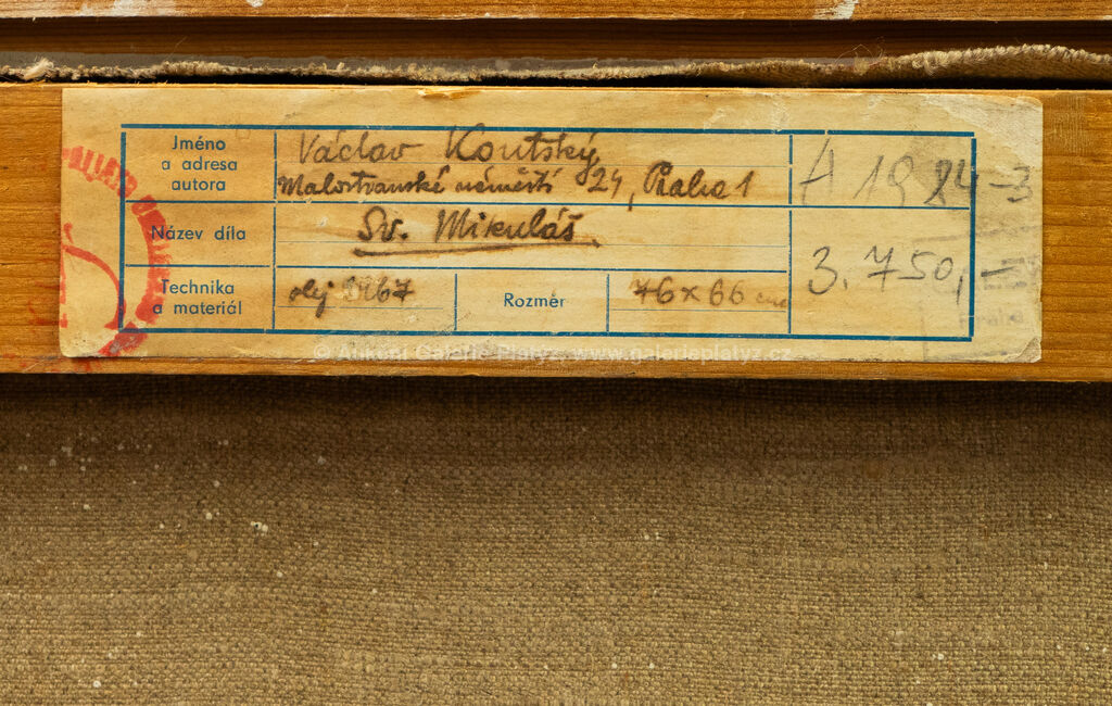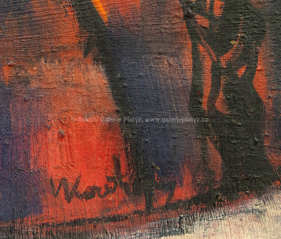olej/plátno, rozměr 76 x 66 cm, značeno a datováno ve spodní části, rámováno, poškozený rám, přiložen původní nabývací dokument z Galerie Platýz ze srpna roku 1968