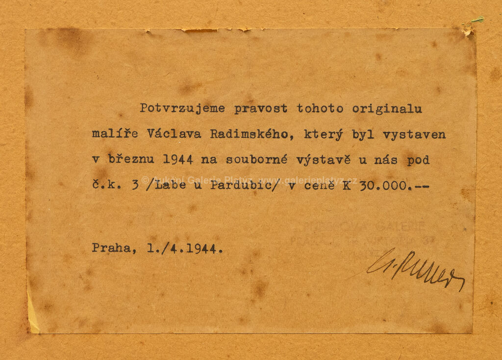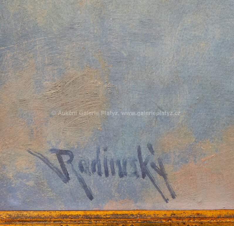 olej/karton, rozměr 70 x 99 cm, značeno vlevo dole, rámováno, oděrky na rámu