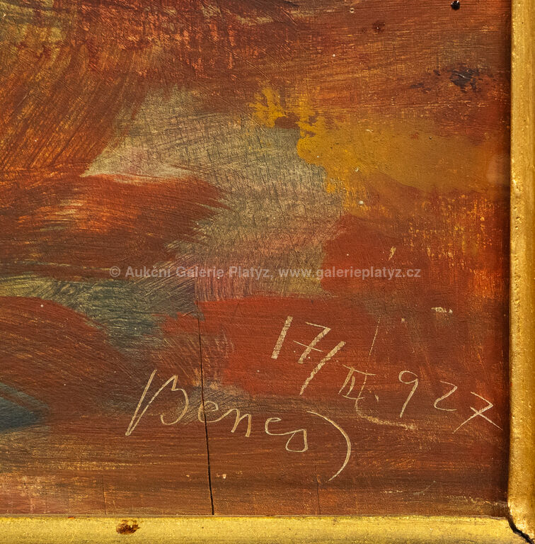 olej/překližka, rozměr 48 x 58 cm, značeno a datováno vpravo dole, rámováno, oděrky na rámu