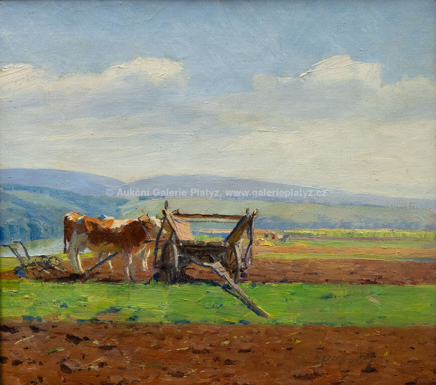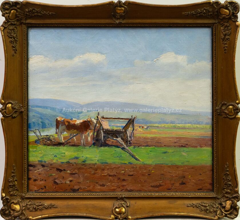 olej/plátno, rozměr 40 x 45 cm, značeno vpravo dole, rámováno, oděrky na rámu