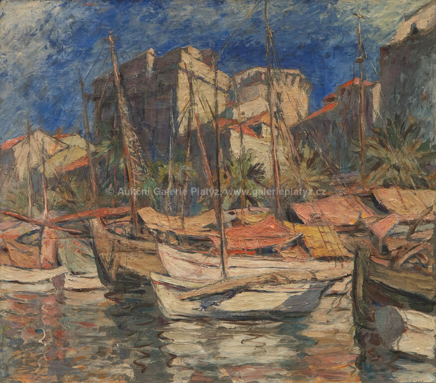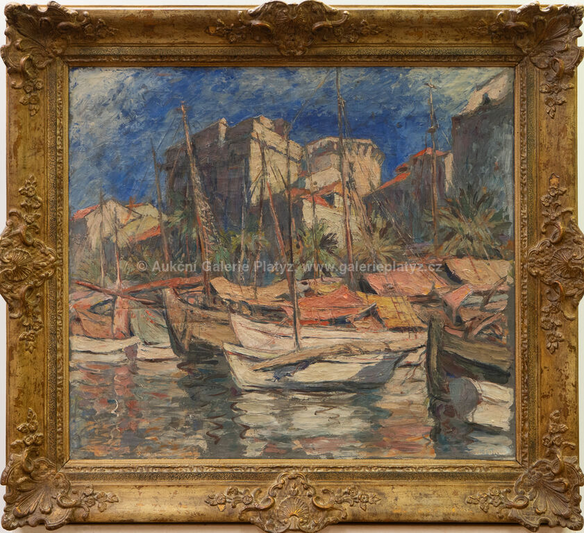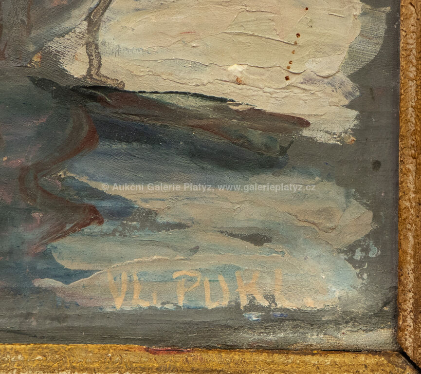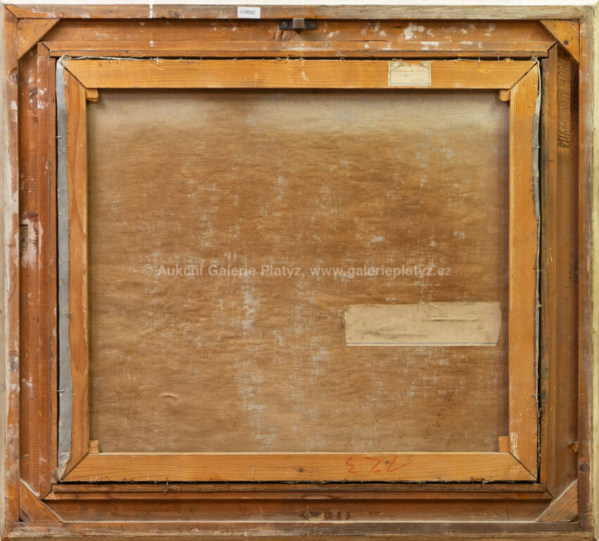 olej/plátno, rozměr 70 x 80 cm, značeno vpravo dole, rámováno, poškozený rám, v minulosti restaurováno,po