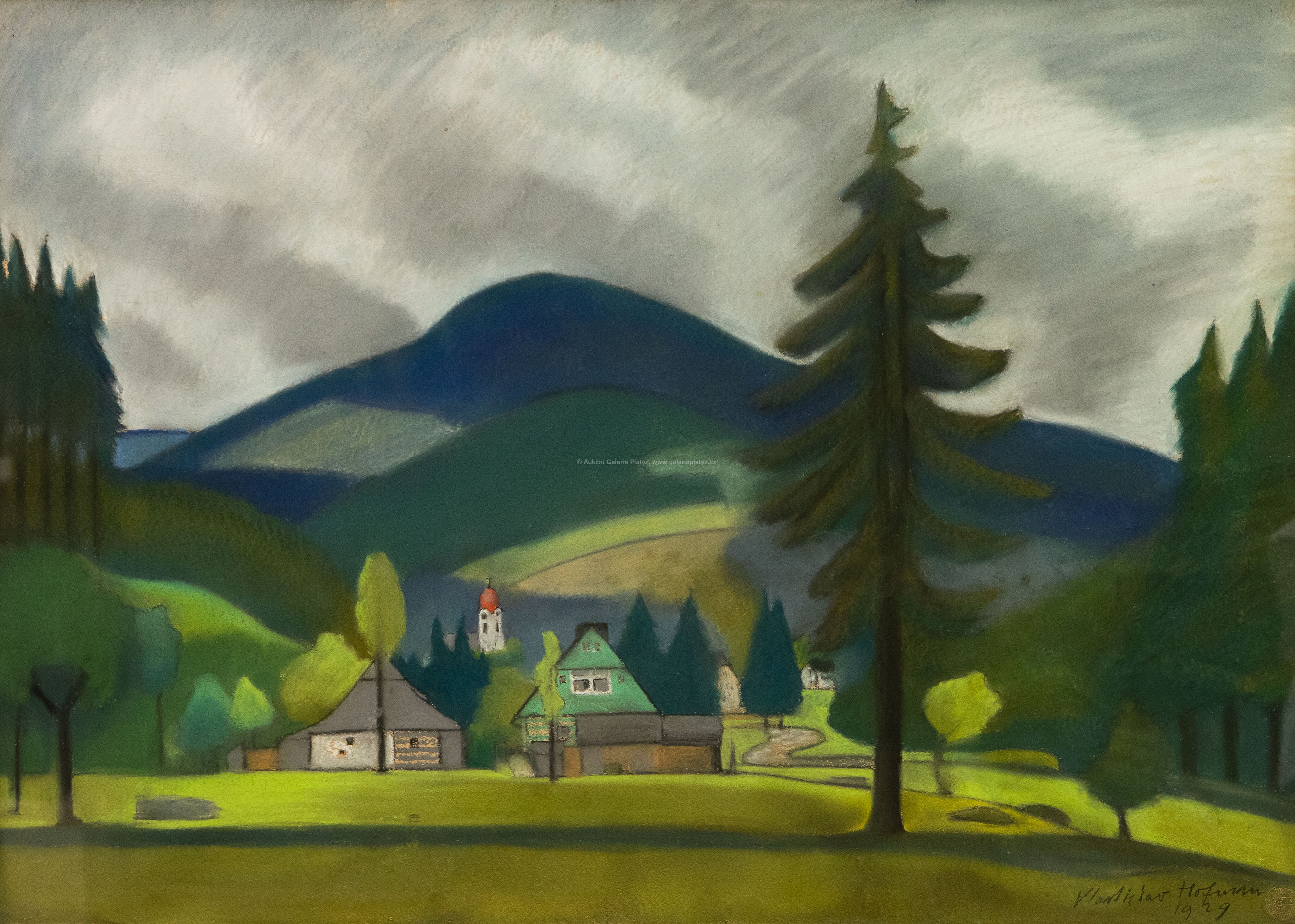 pastel/karton, rozměr 74 x 103 cm (VELKÝ FORMÁT), značeno a datováno vpravo dole, zaskleno, rámováno, po