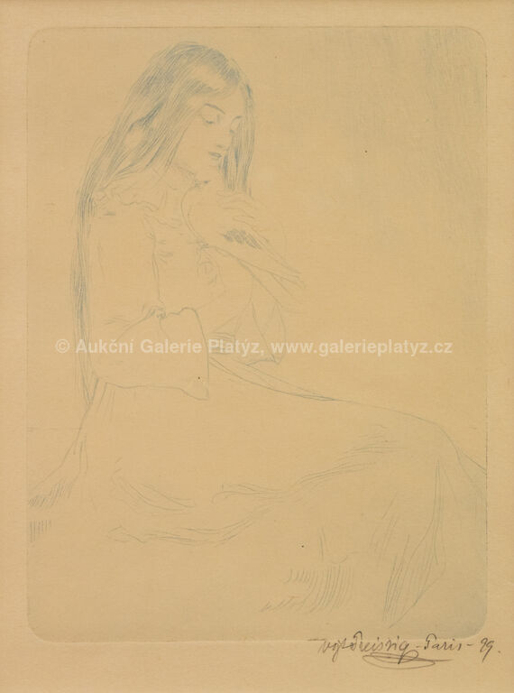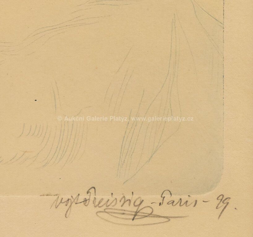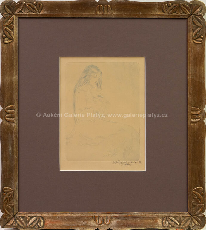 lept/papír, rozměr ve výřezu 22,5 x 17 cm, značeno, datováno a popsáno vpravo dole, paspartováno, zaskleno, rámováno, poškozený rám