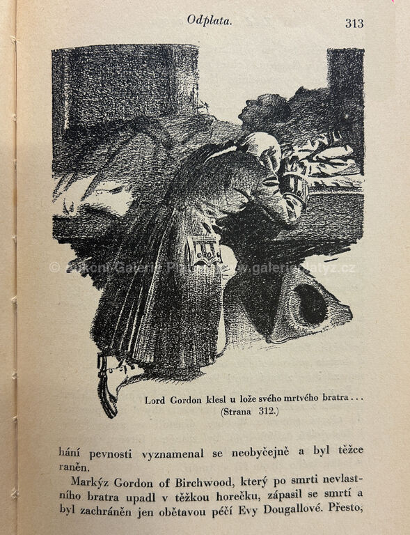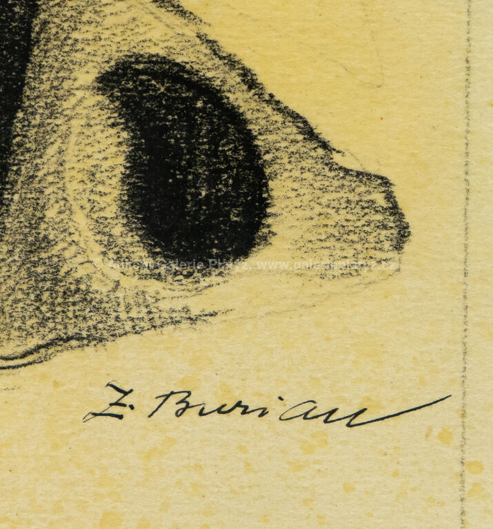 kombinovaná technika/papír, rozměr ve výřezu 28,5 x 20 cm, značeno na pravé straně, popsáno ve spodní části, paspartováno, zaskleno, rámováno, oděrky na rámu, publikováno v knize Zvěd z tvrze Oswego na str. 227, Nakladatelství Toužimský & Moravec - první vydání (r.1938)