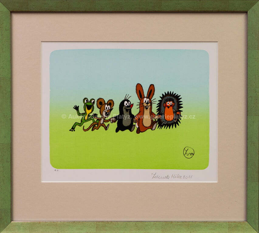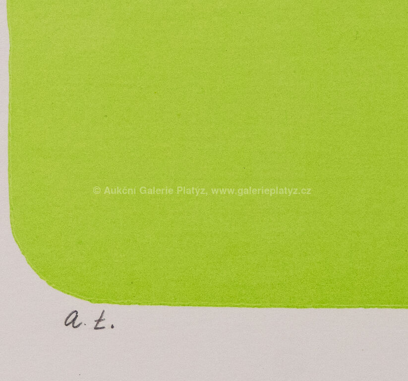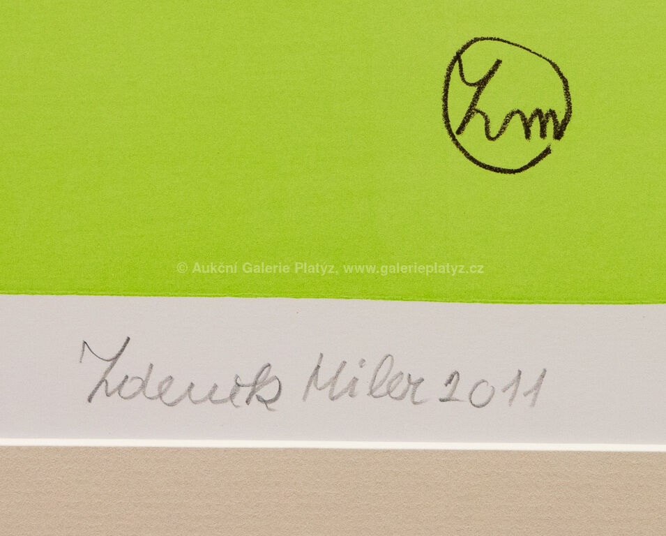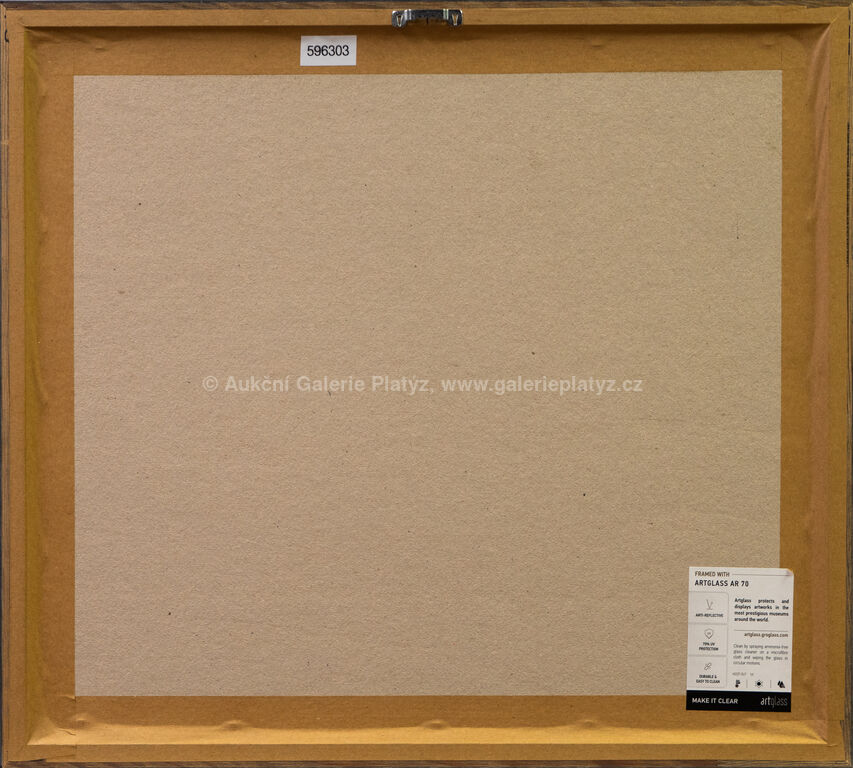 barevná litografie/papír, rozměr ve výřezu 27,5 x 34,5 cm, značeno vpravo dole v tisku, značeno, datováno a popsáno ve spodní části tužkou, paspartováno, zaskleno muzeálním sklem, rámováno
