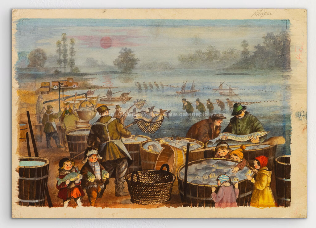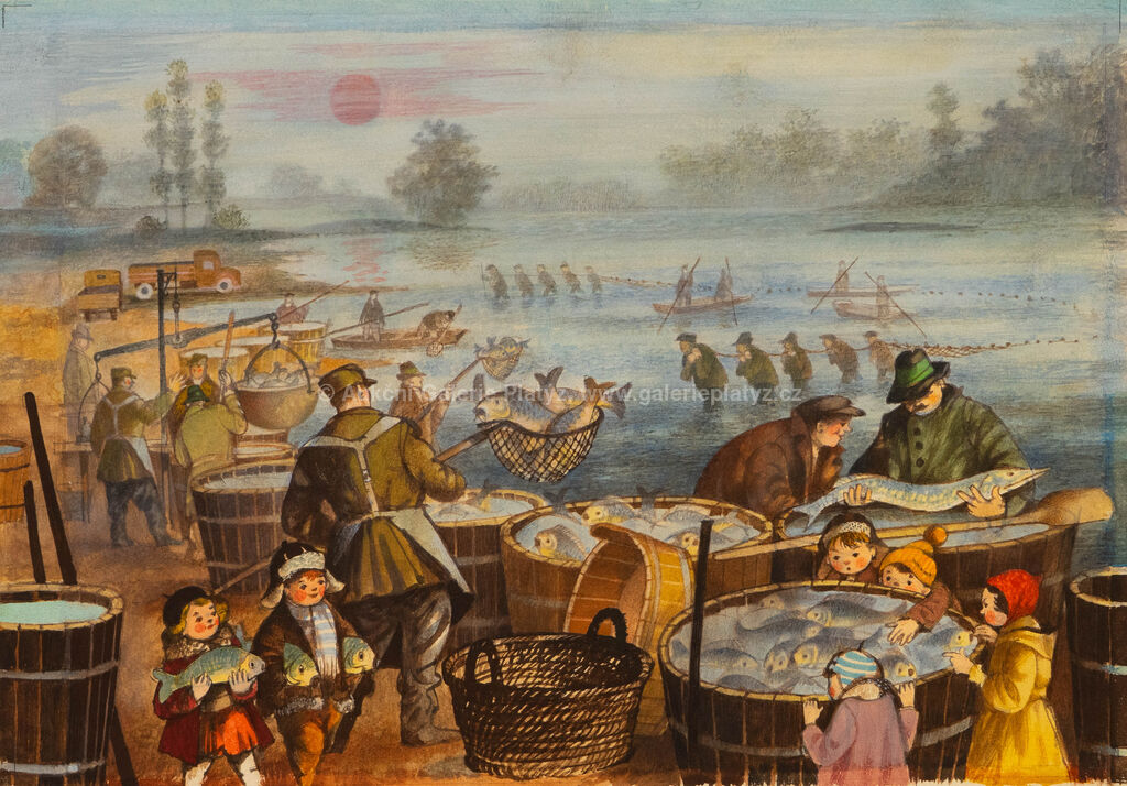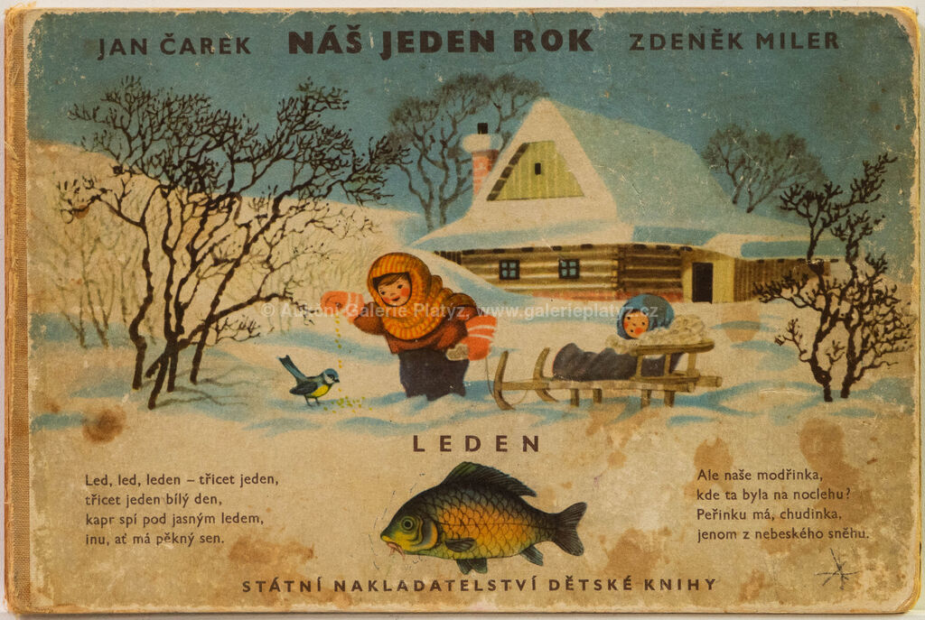kvaš/papír, rozměr listu 25 x 35 cm, neznačeno, volně loženo, původní ilustrace z dětského leporela Náš jeden rok, naps. Jan Čarek, ilust. Zdeněk Miler, vyd. SNDK 1954