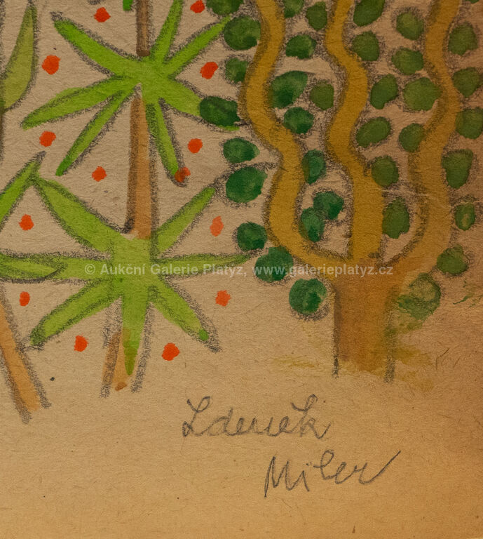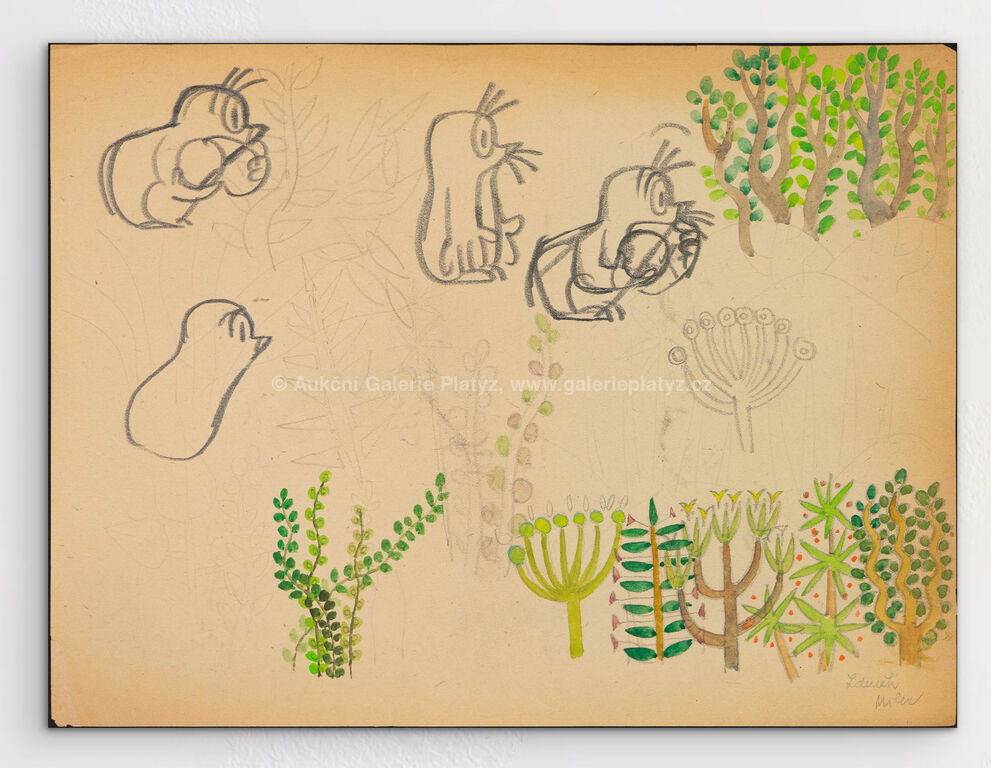 kombinovaná technika, tužka/akvarel/papír, rozměr listu 26 x 35 cm, značeno vpravo dole, volně loženo